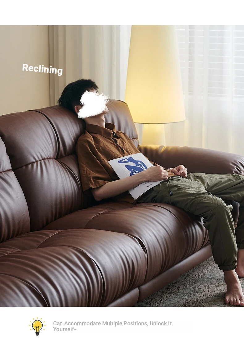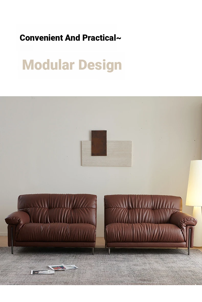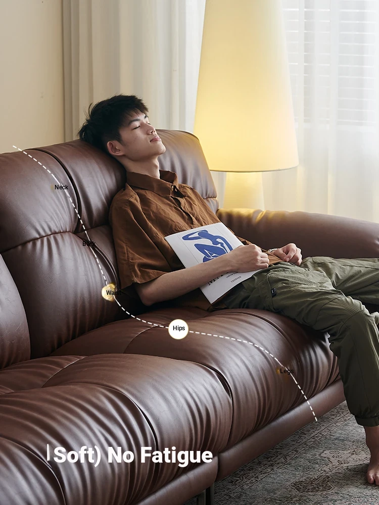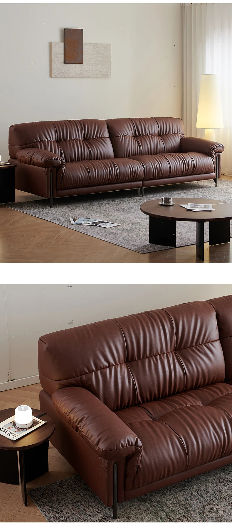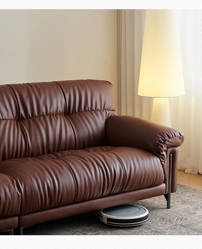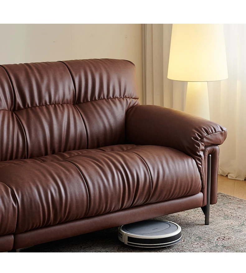 宮瑪/ホワイトエグレット本革ソファ フランス風レトロバウハウスデザイン 小型リビングに最適なストレートソファ - スタイリッシュで機能的、優雅な空間を演出します!