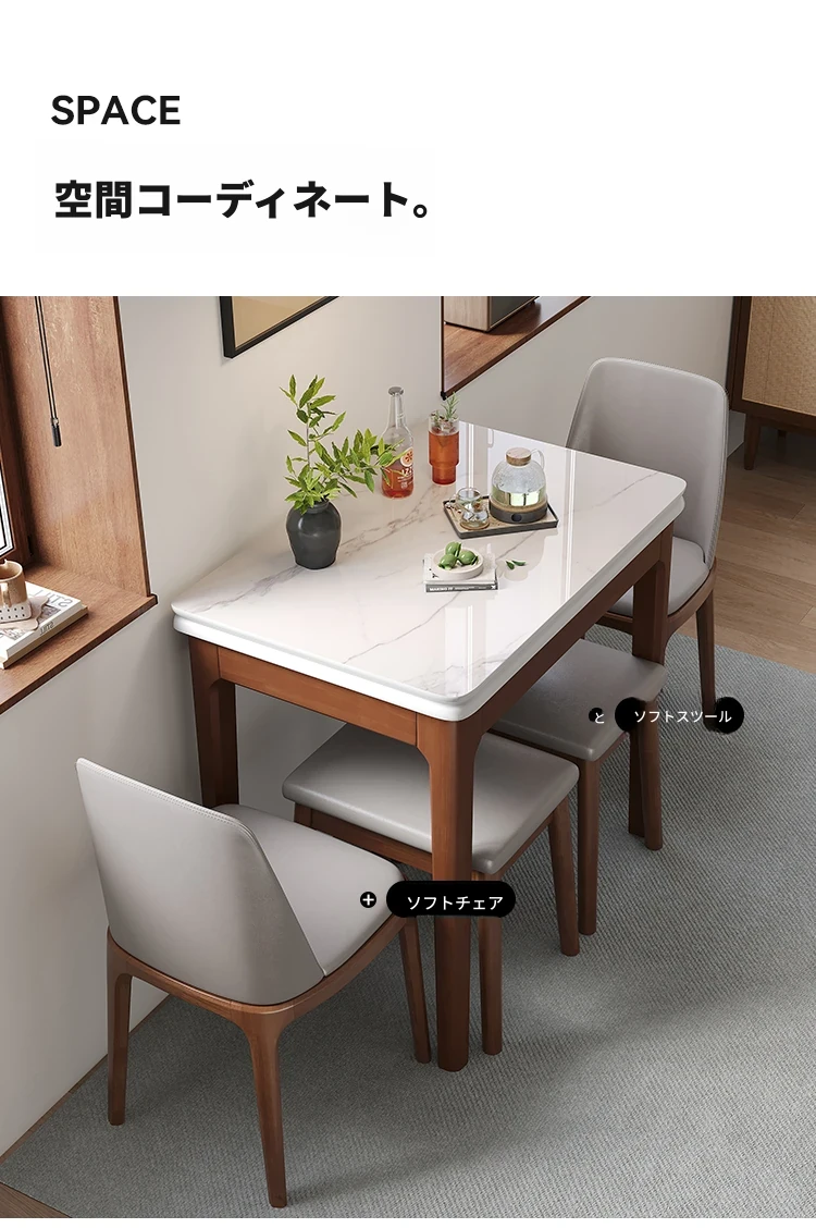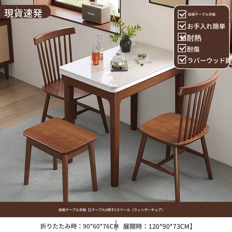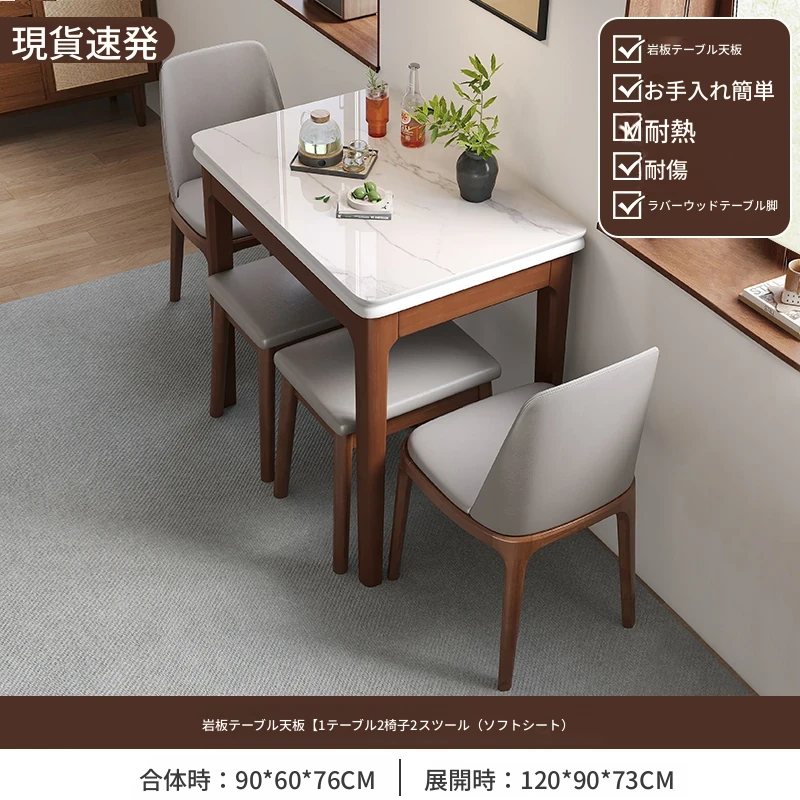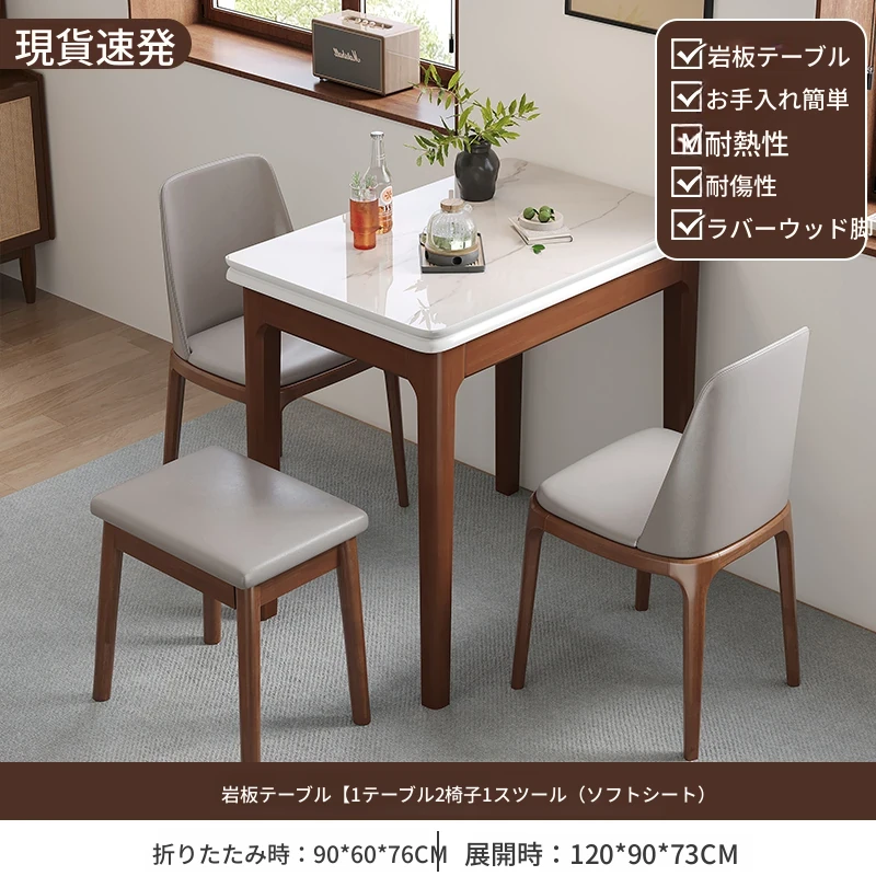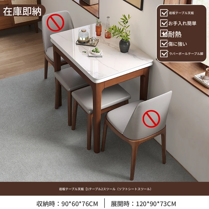 クラシックストーン折りたたみダイニングテーブル単テーブル+2椅子1スツール【ソフトシート】