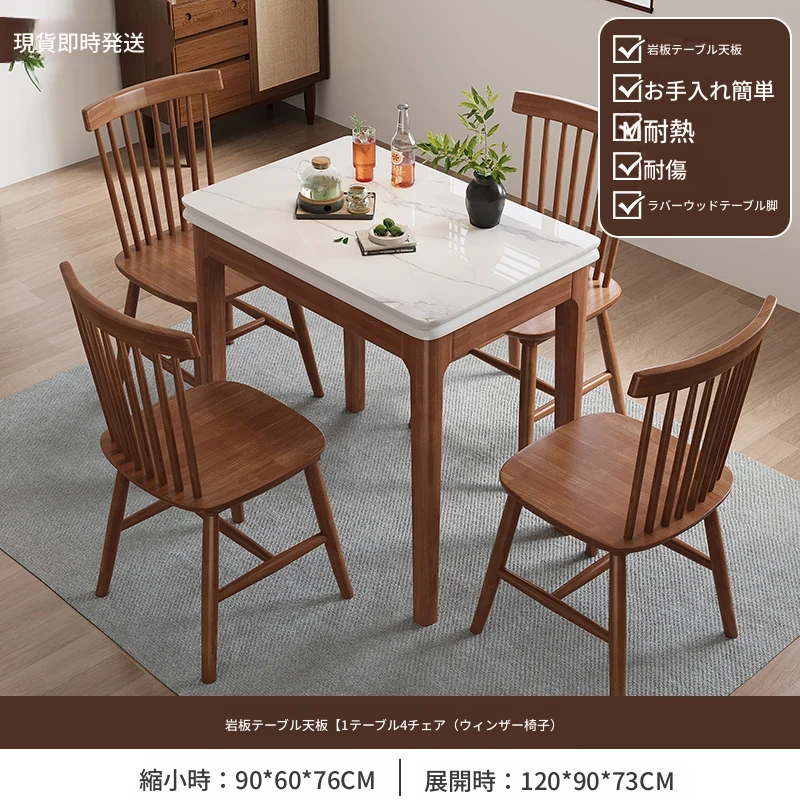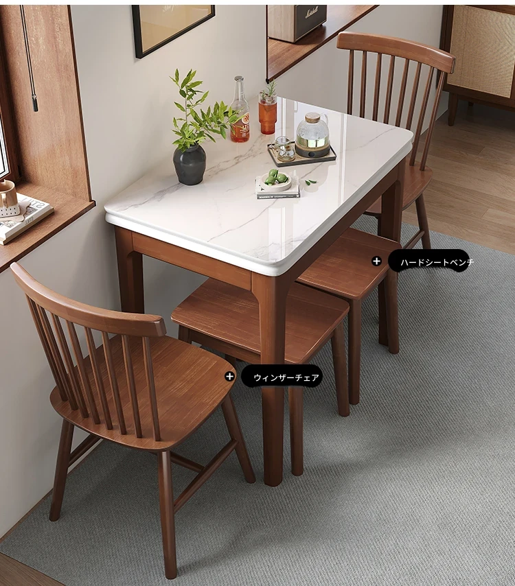クラシックストーン折りたたみダイニングテーブル単テーブル+4ウィンザーチェア【ハードシート】