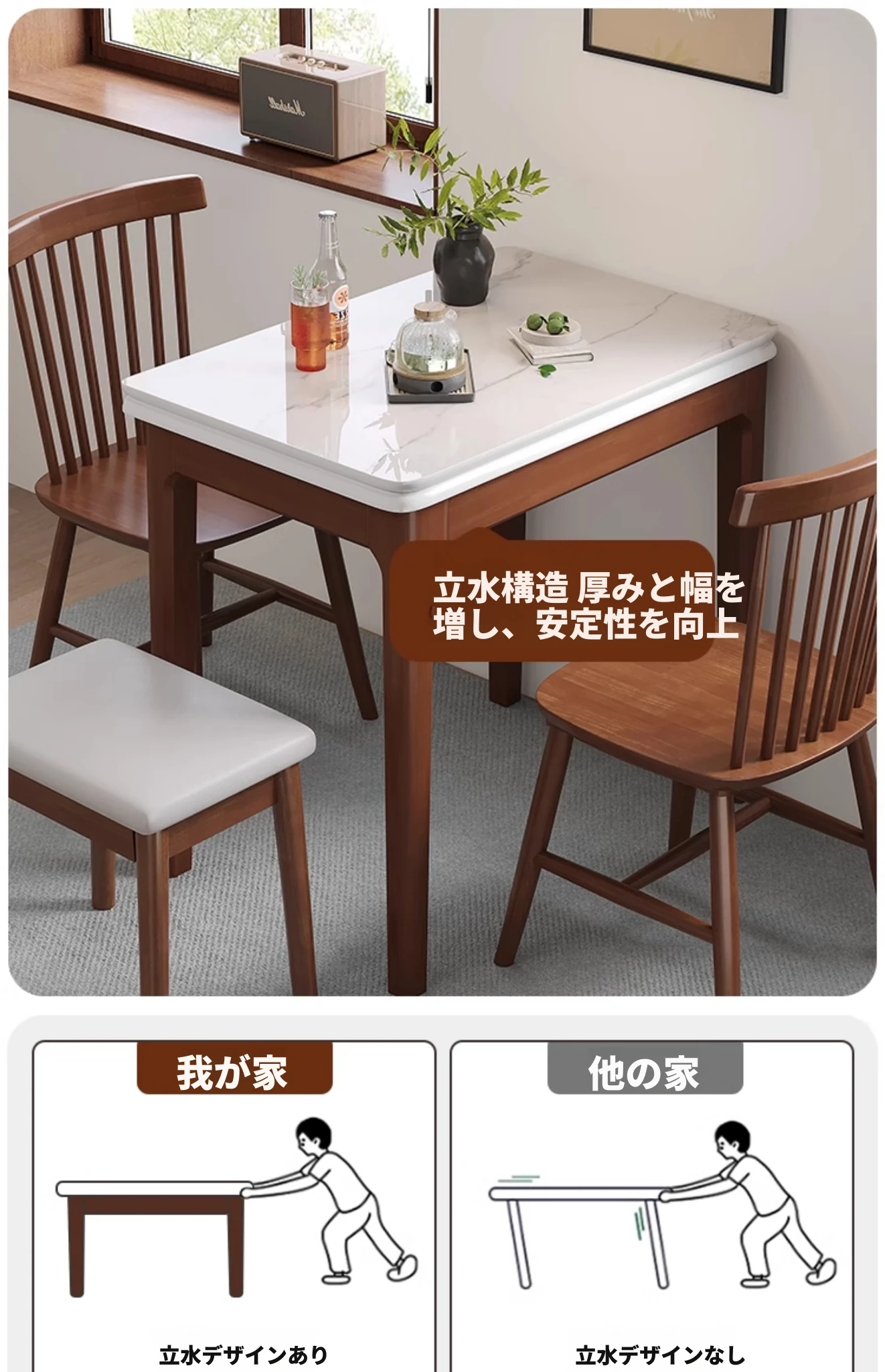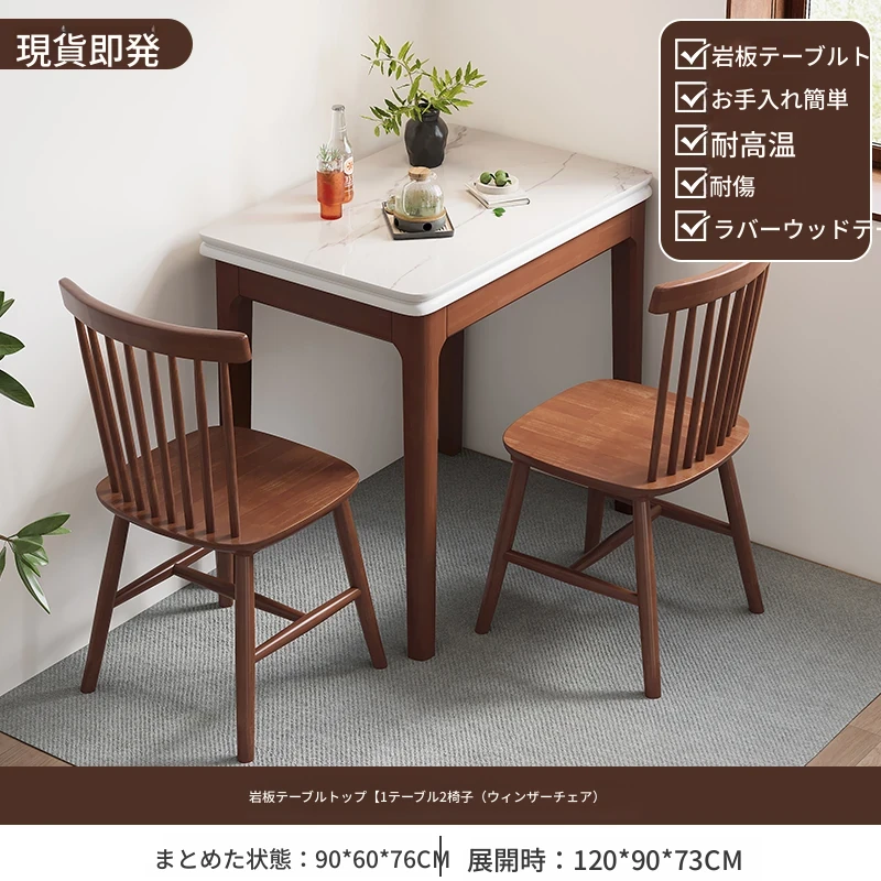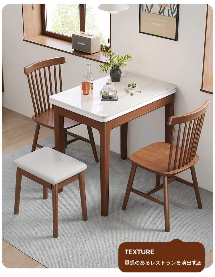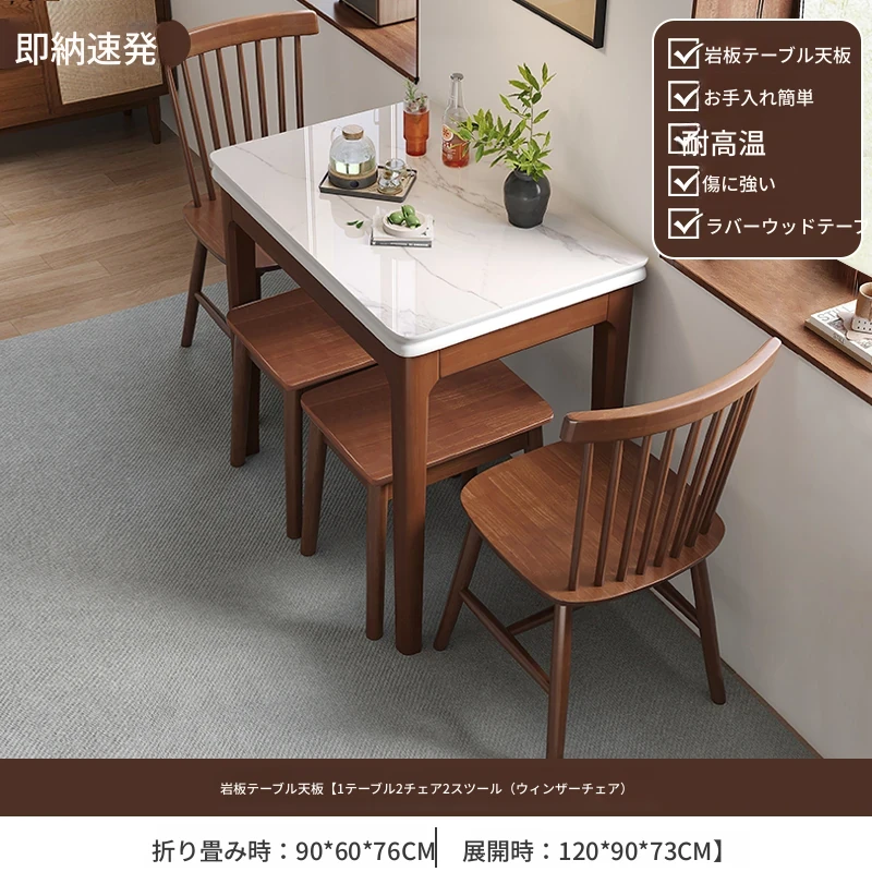 クラシックストーン折りたたみダイニングテーブル単テーブル+2ウィンザーチェア2スツール【ハードシート】
