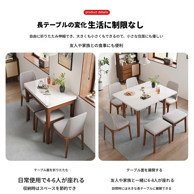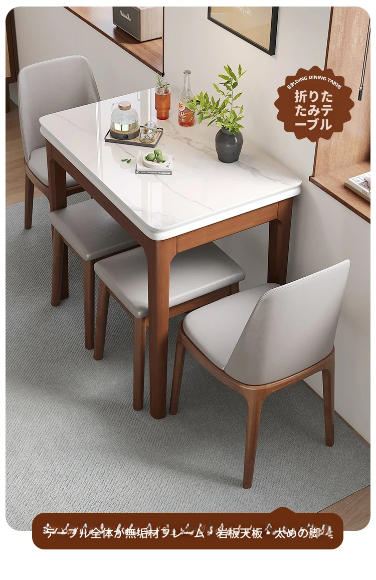 [香港送料無料] モダンでシンプルな北欧スタイルの拡張可能な折りたたみ式ダイニングテーブル - 小型住宅に最適な多機能デザイン!