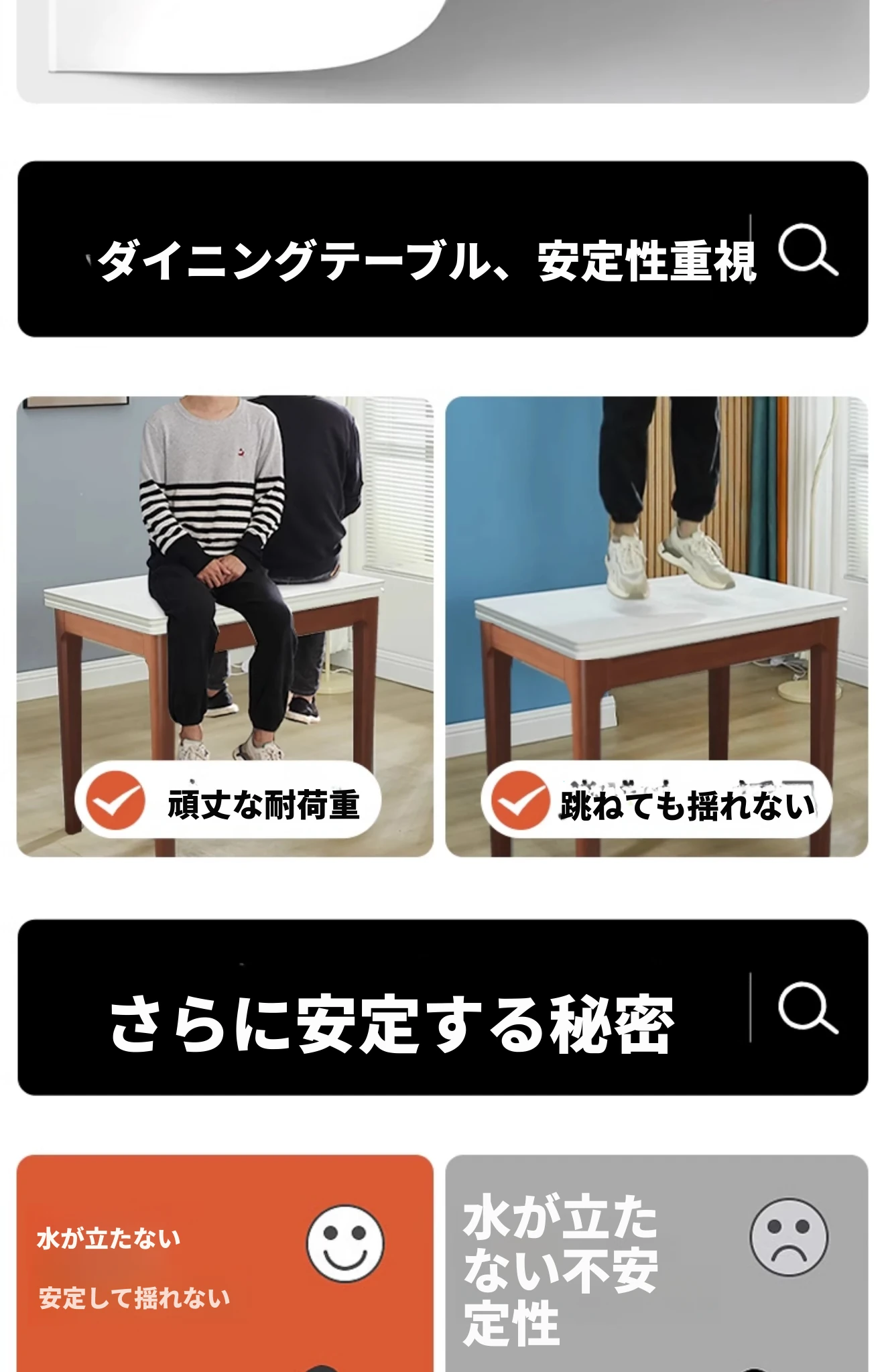 クラシックストーン折りたたみダイニングテーブル単テーブル+2椅子2スツール【ソフトシート】