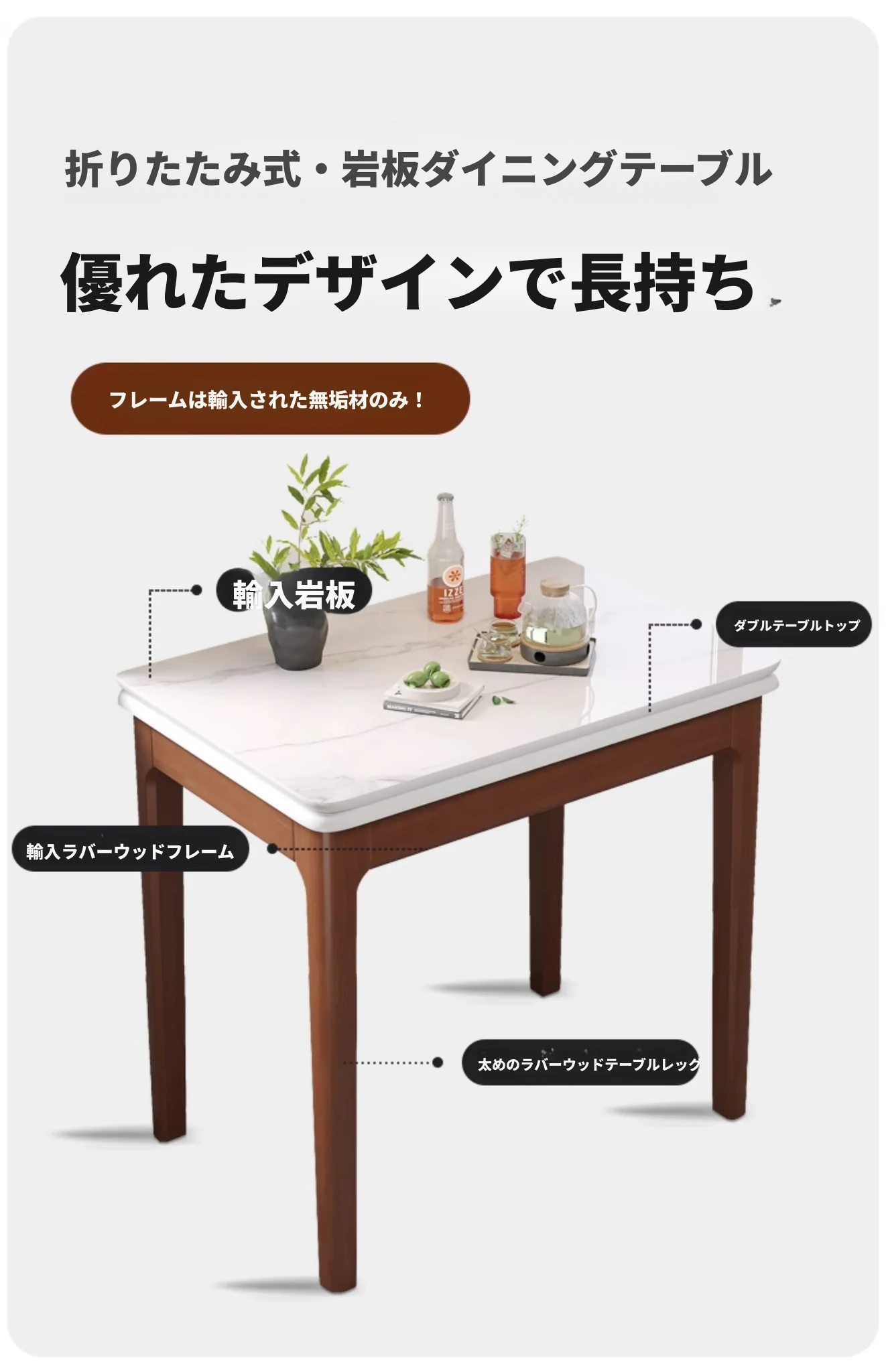 クラシックストーン折りたたみダイニングテーブル単テーブル【ウォールナット色】