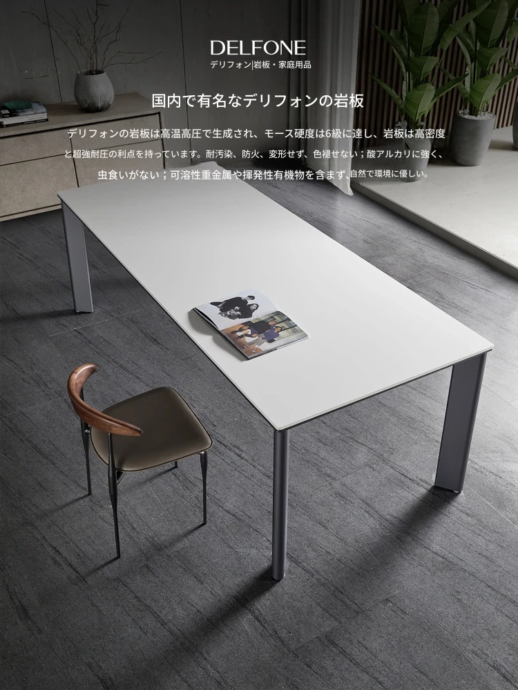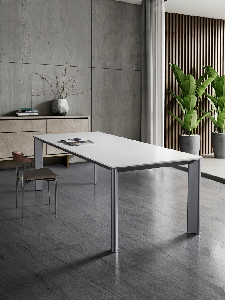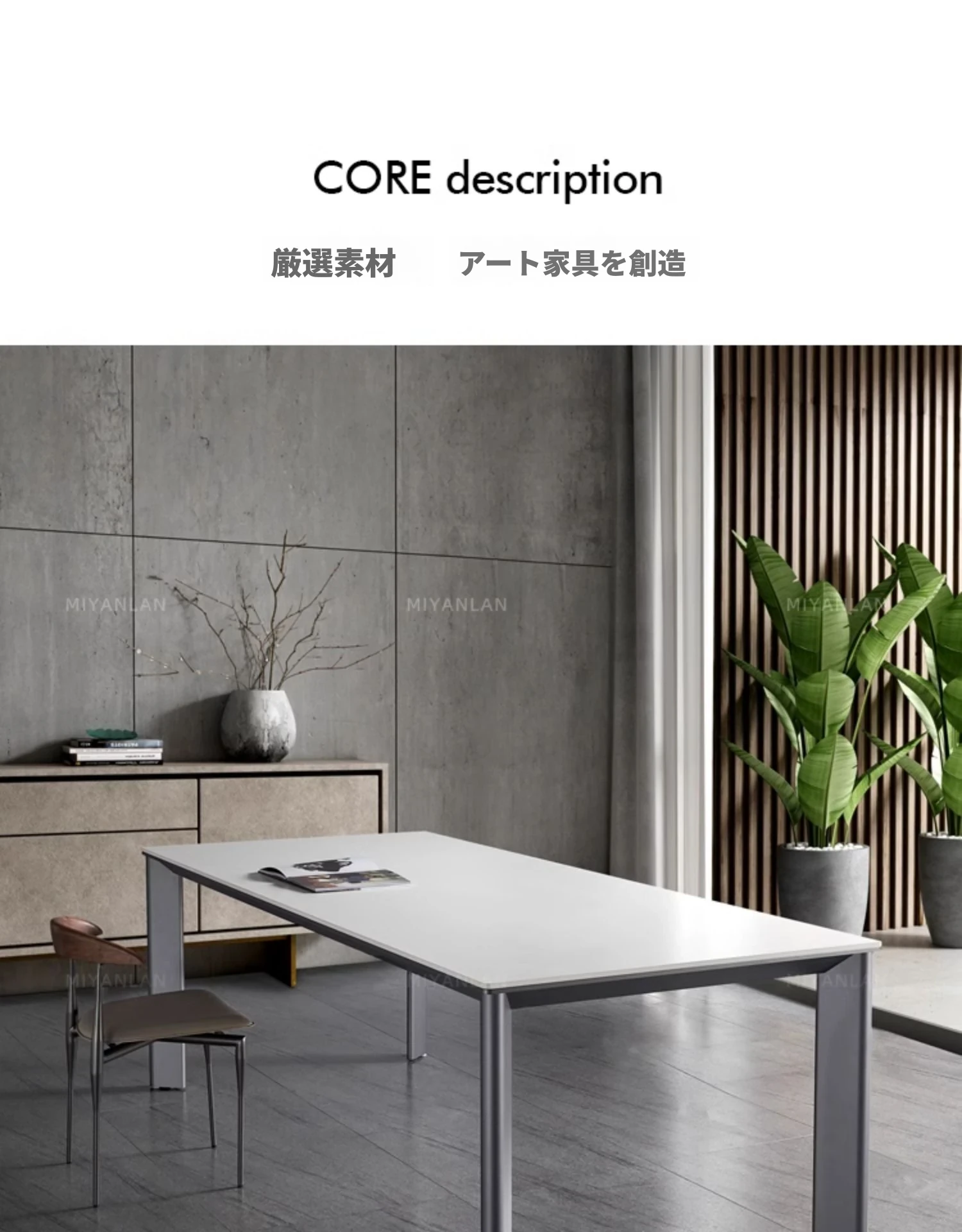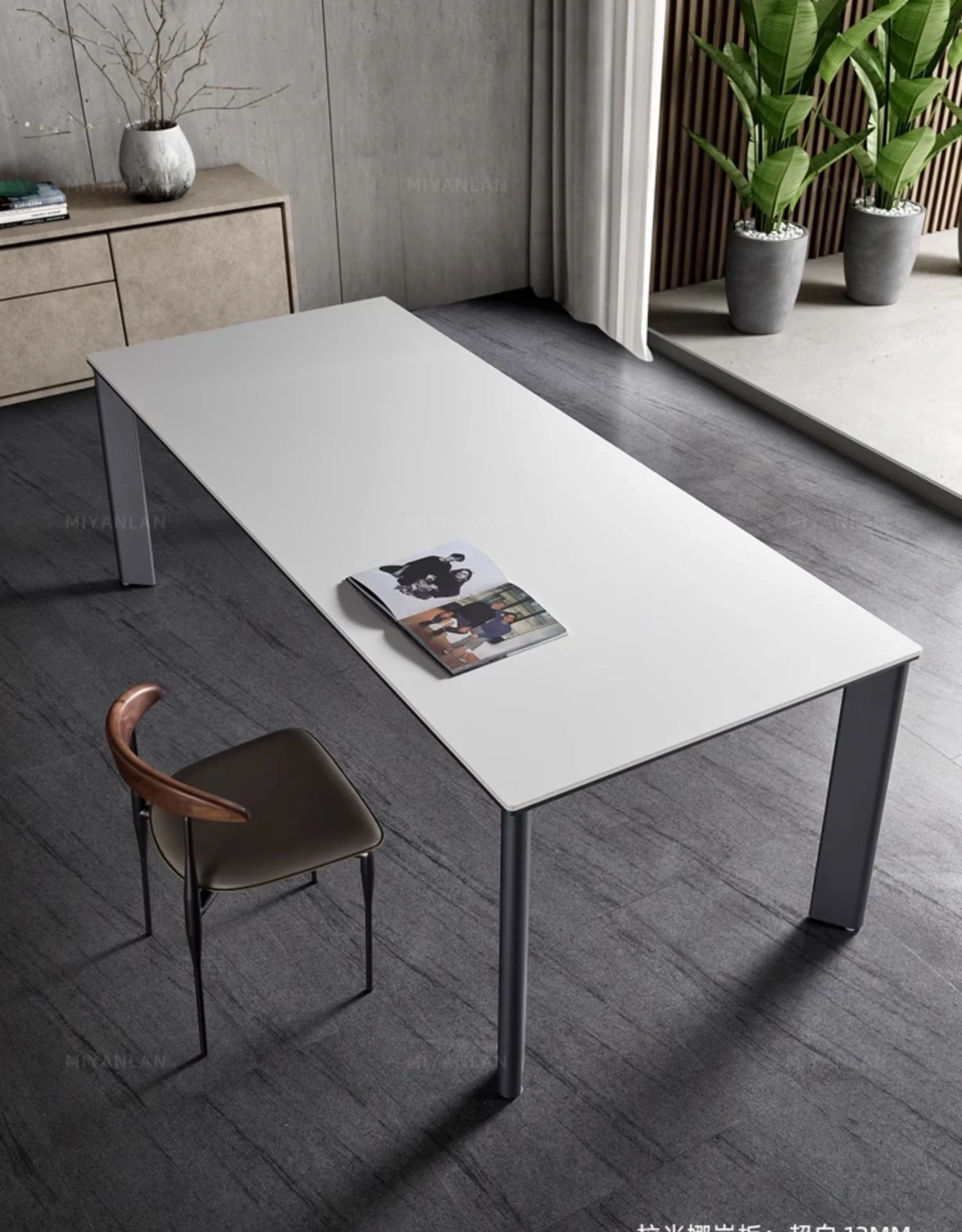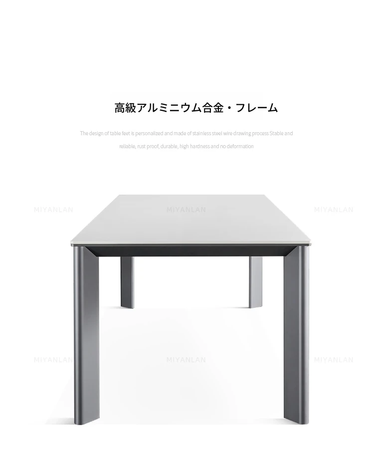 イタリア輸入ラミナストーン長方形ダイニングテーブル|イタリアンラグジュアリー・高級別荘向けアルミ合金製・大サイズ|洗練されたデザインで食卓を華やかに演出!