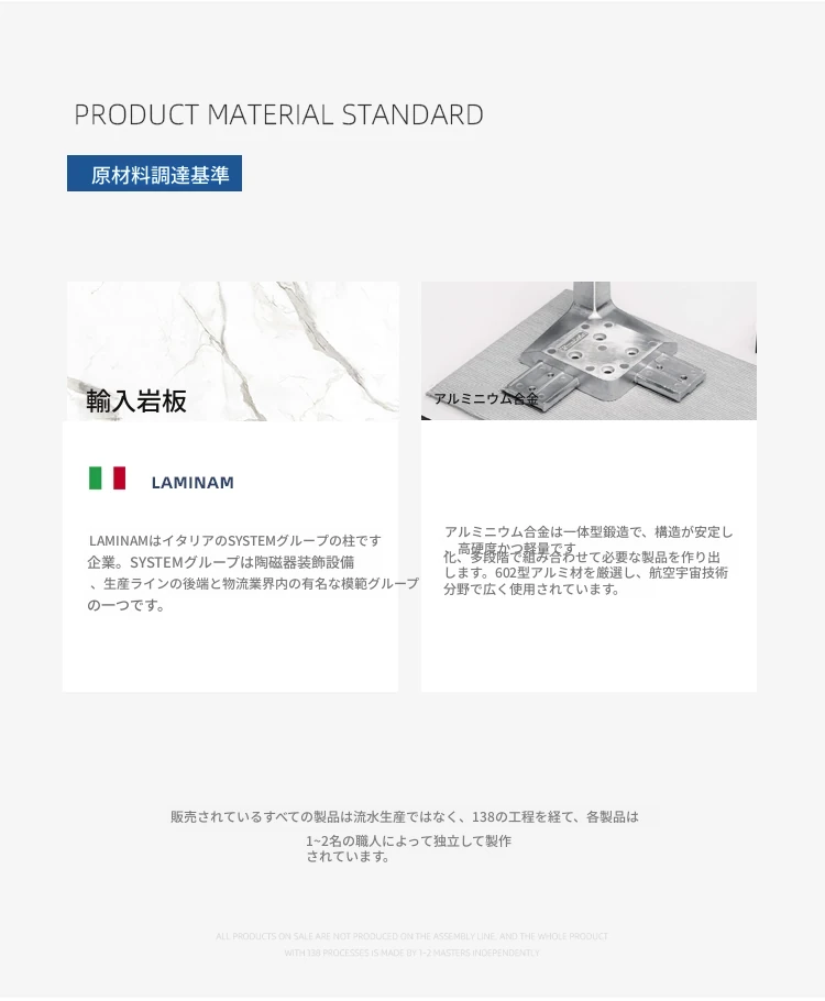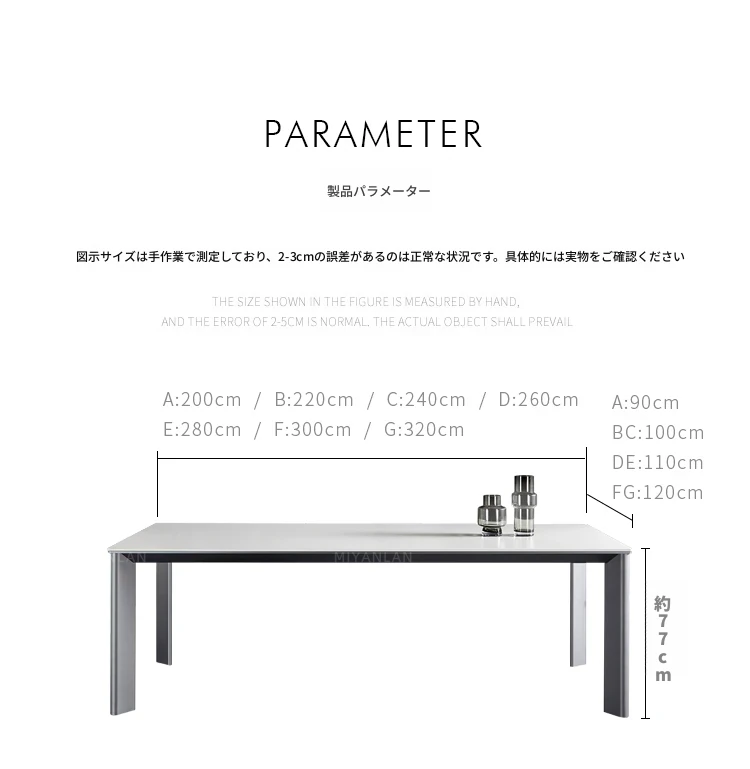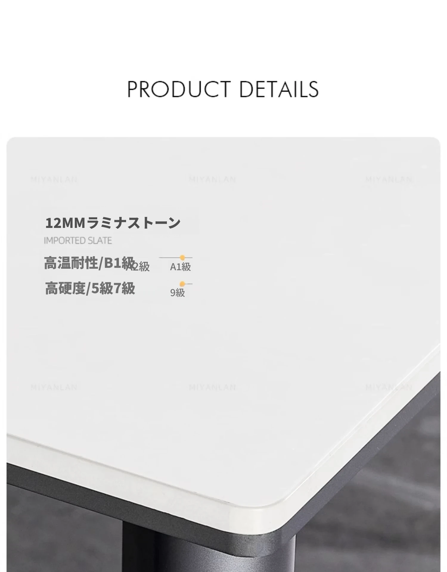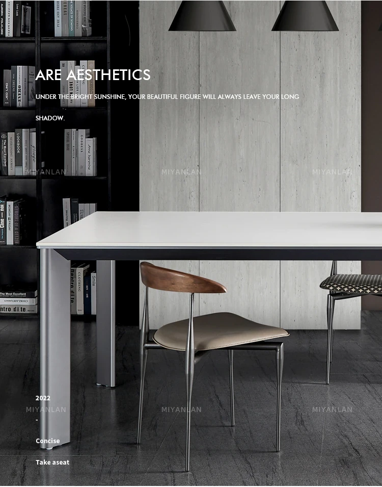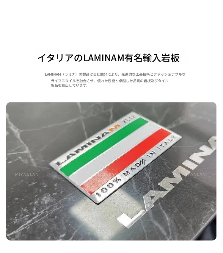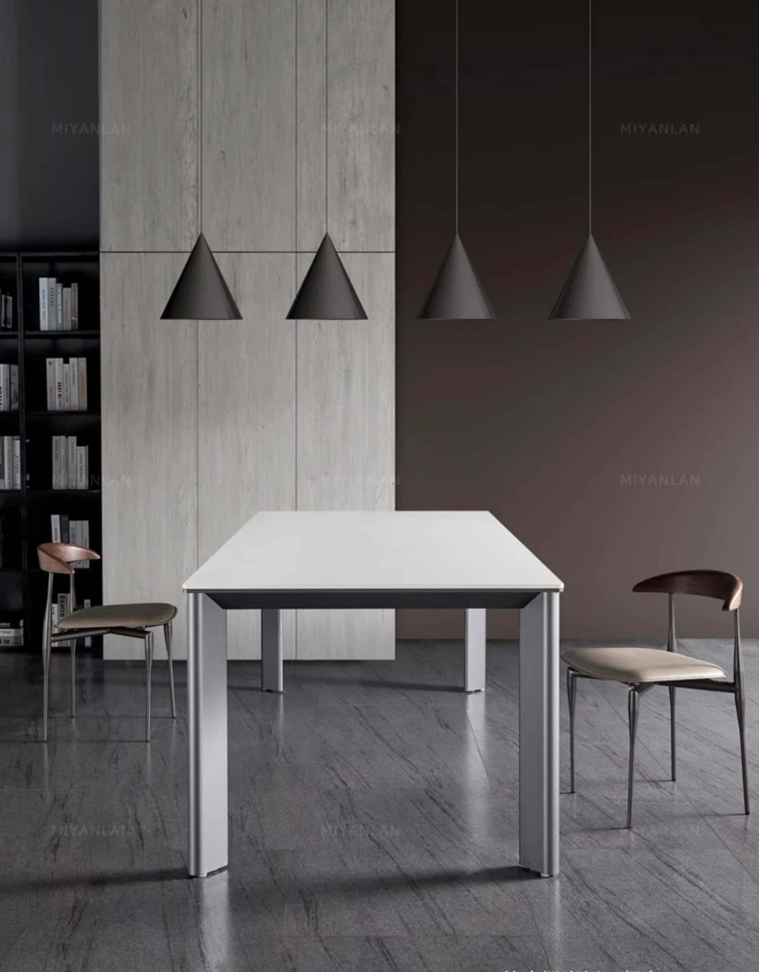 イタリア輸入ラミナストーン長方形ダイニングテーブル|イタリアンラグジュアリー・高級別荘向けアルミ合金製・大サイズ|洗練されたデザインで食卓を華やかに演出!