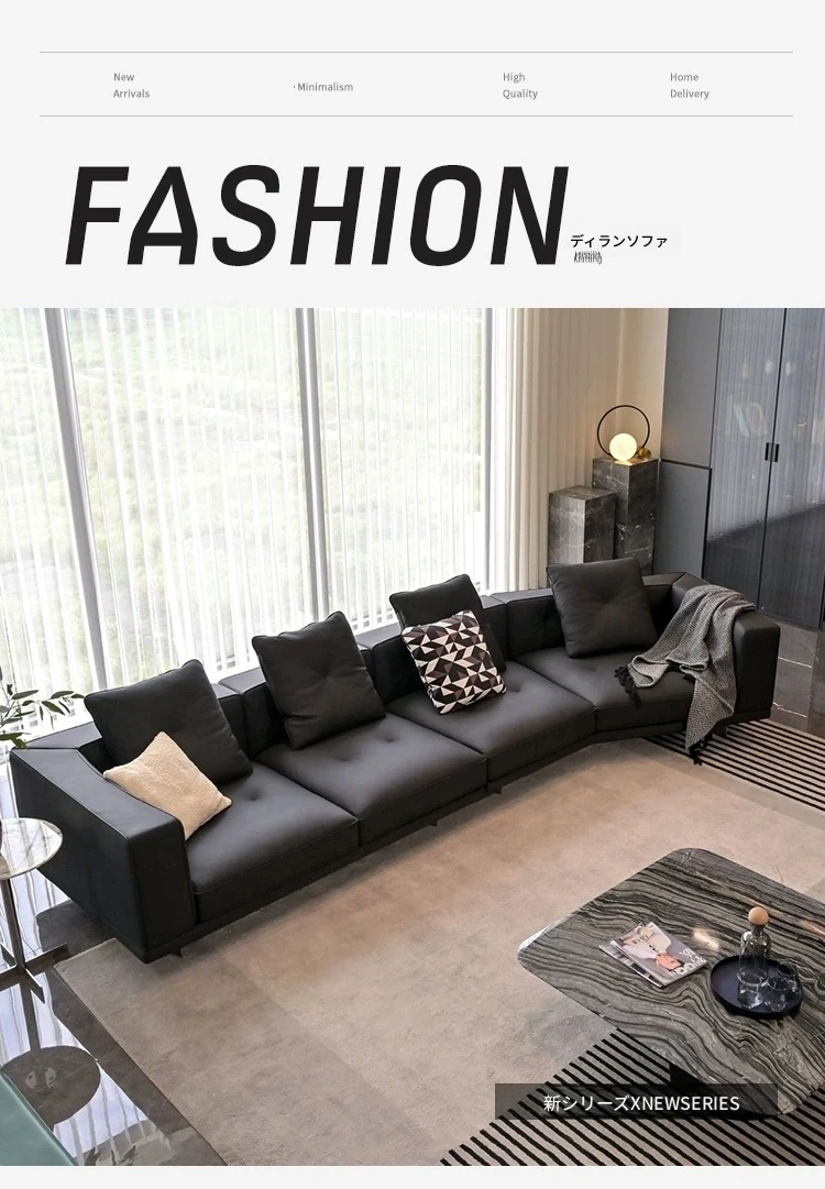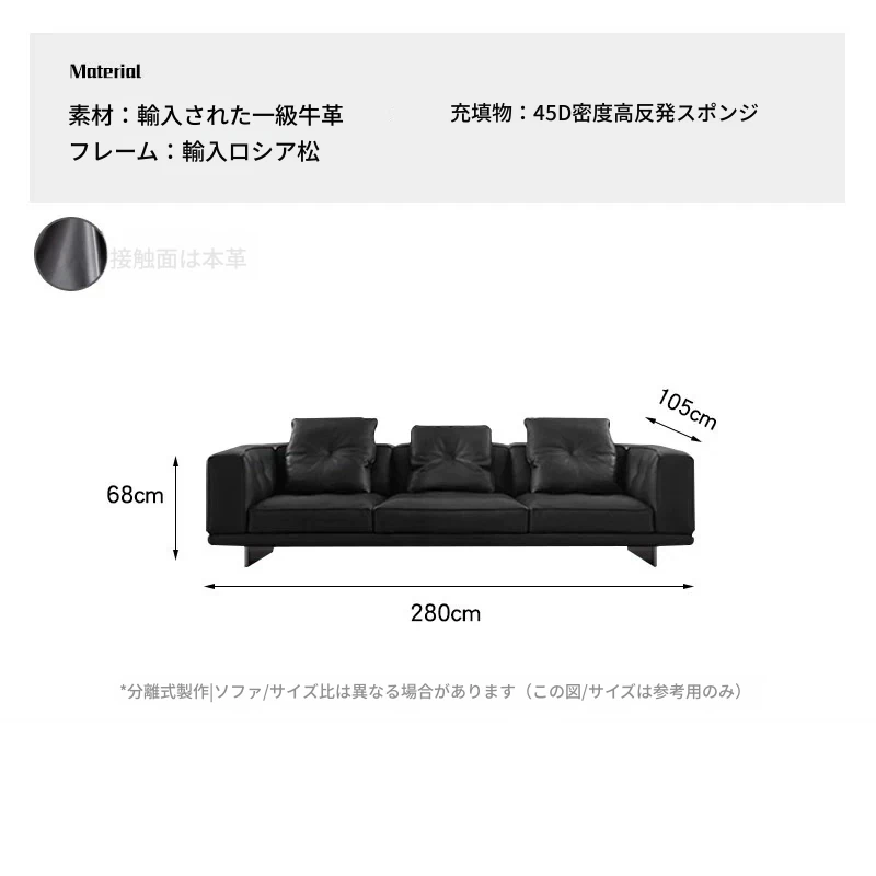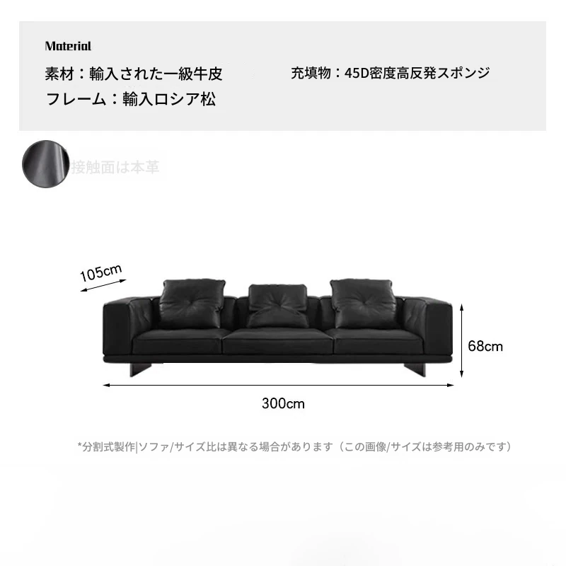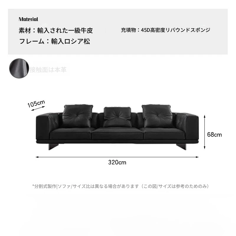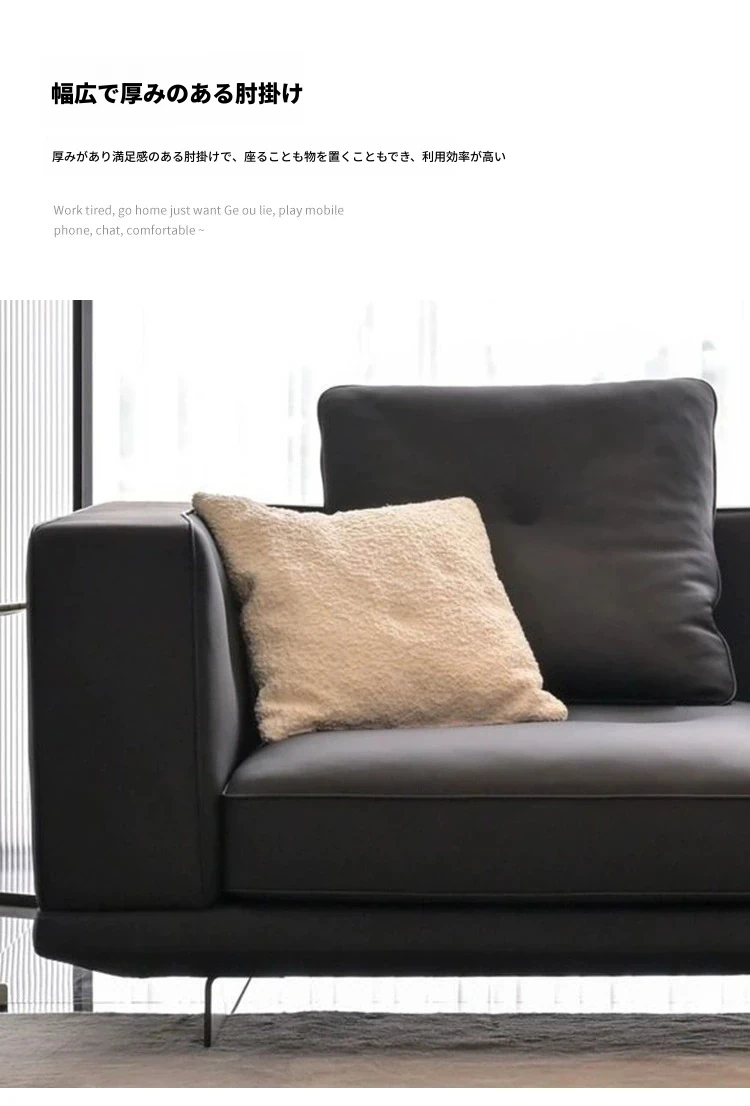 イタリアンミニマリズム本革ディランソファー - 高級イタリア製トップグレインレザー使用、広々としたヴィラのリビングにぴったり!2024年新作、洗練されたデザインで上質なひとときをお届けします。