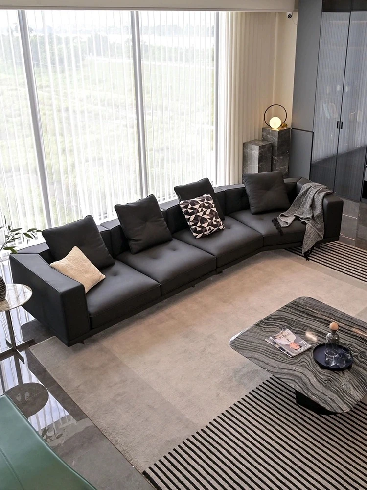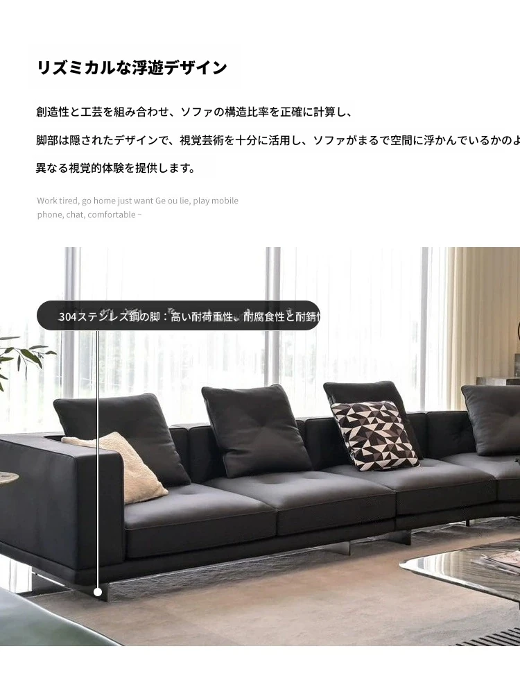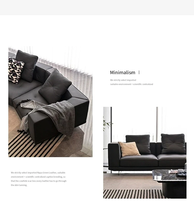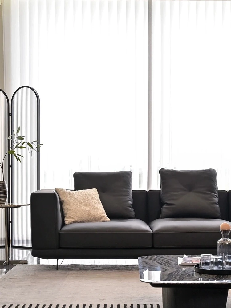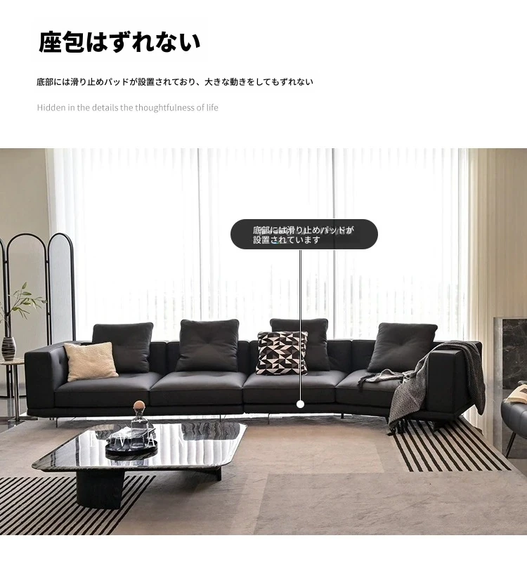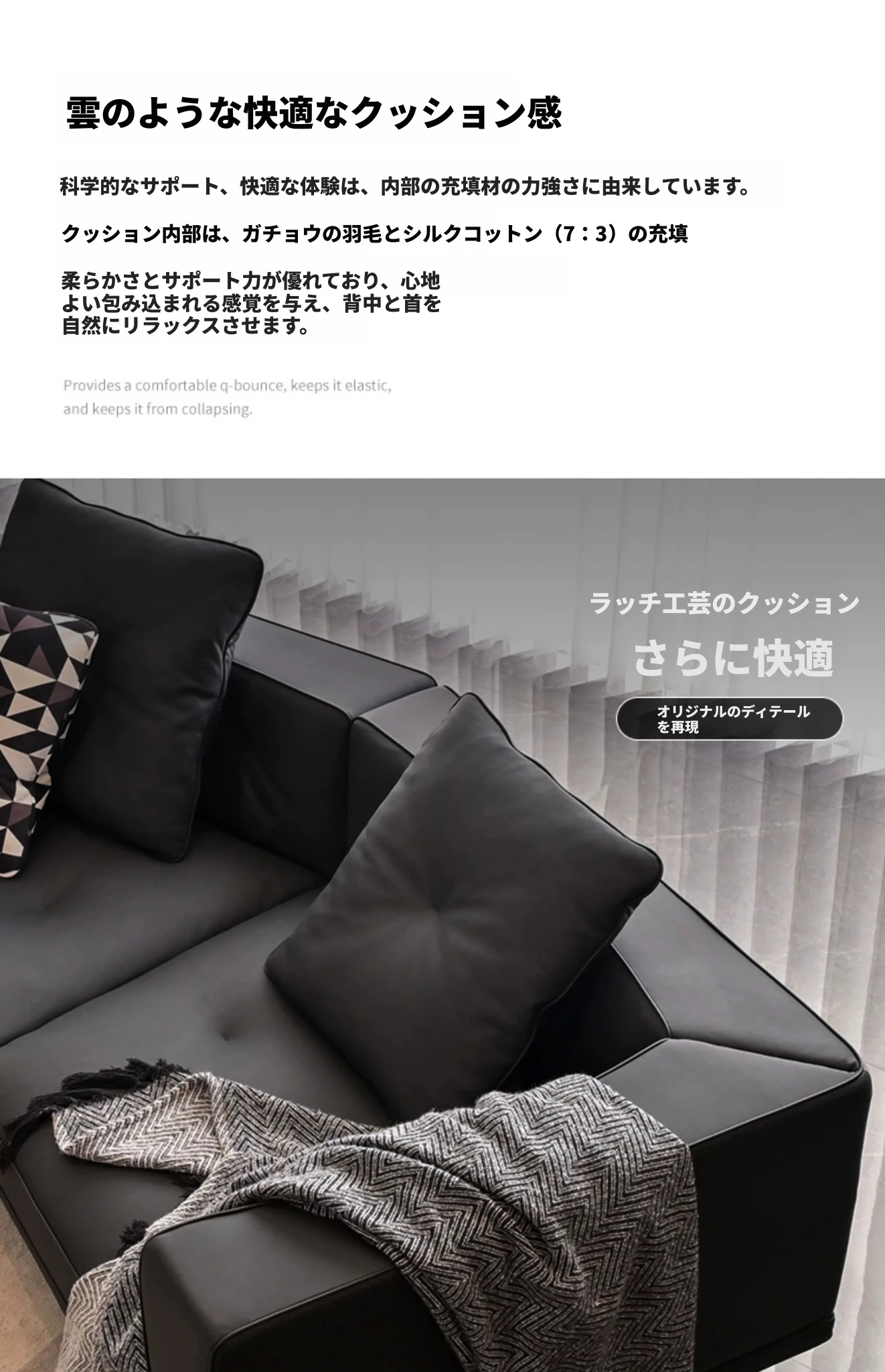 イタリアンミニマリズム本革ディランソファー - 高級イタリア製トップグレインレザー使用、広々としたヴィラのリビングにぴったり!2024年新作、洗練されたデザインで上質なひとときをお届けします。