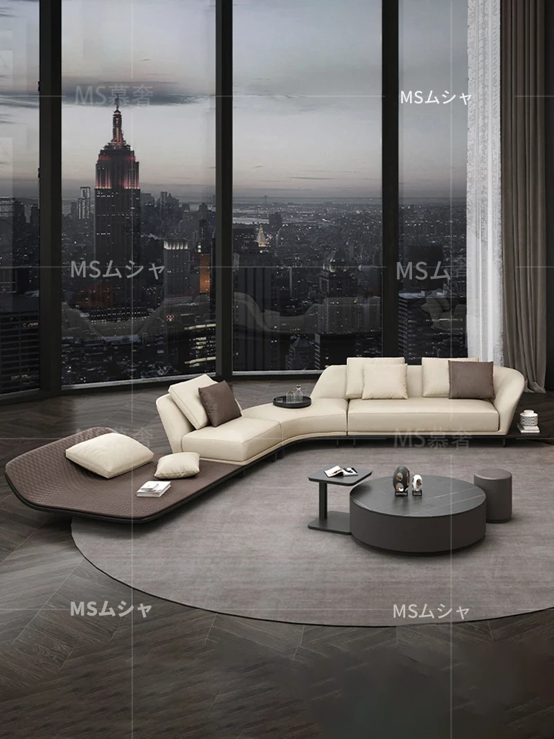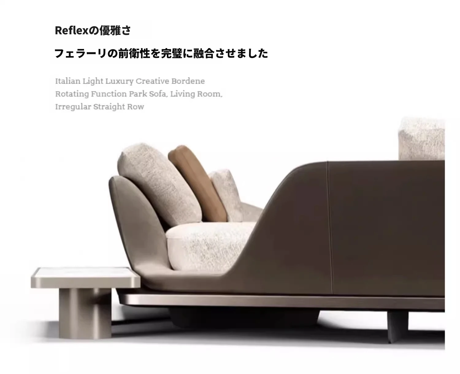 イタリア製Reflex Segnoファラーリ本革アーチ型イタリアンラグジュアリーソファ - ディリラバ別荘スタイルの上質な布製ソファで、快適さと美しさを兼ね備えた贅沢な空間を演出します。