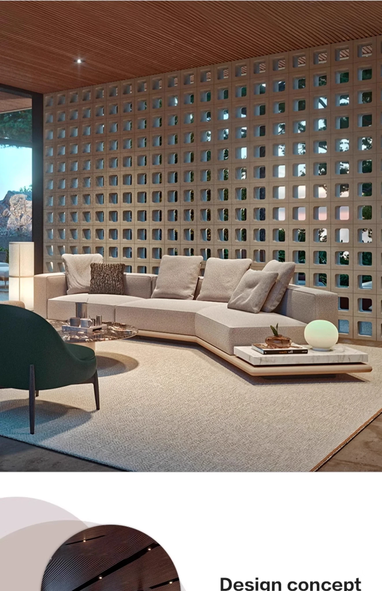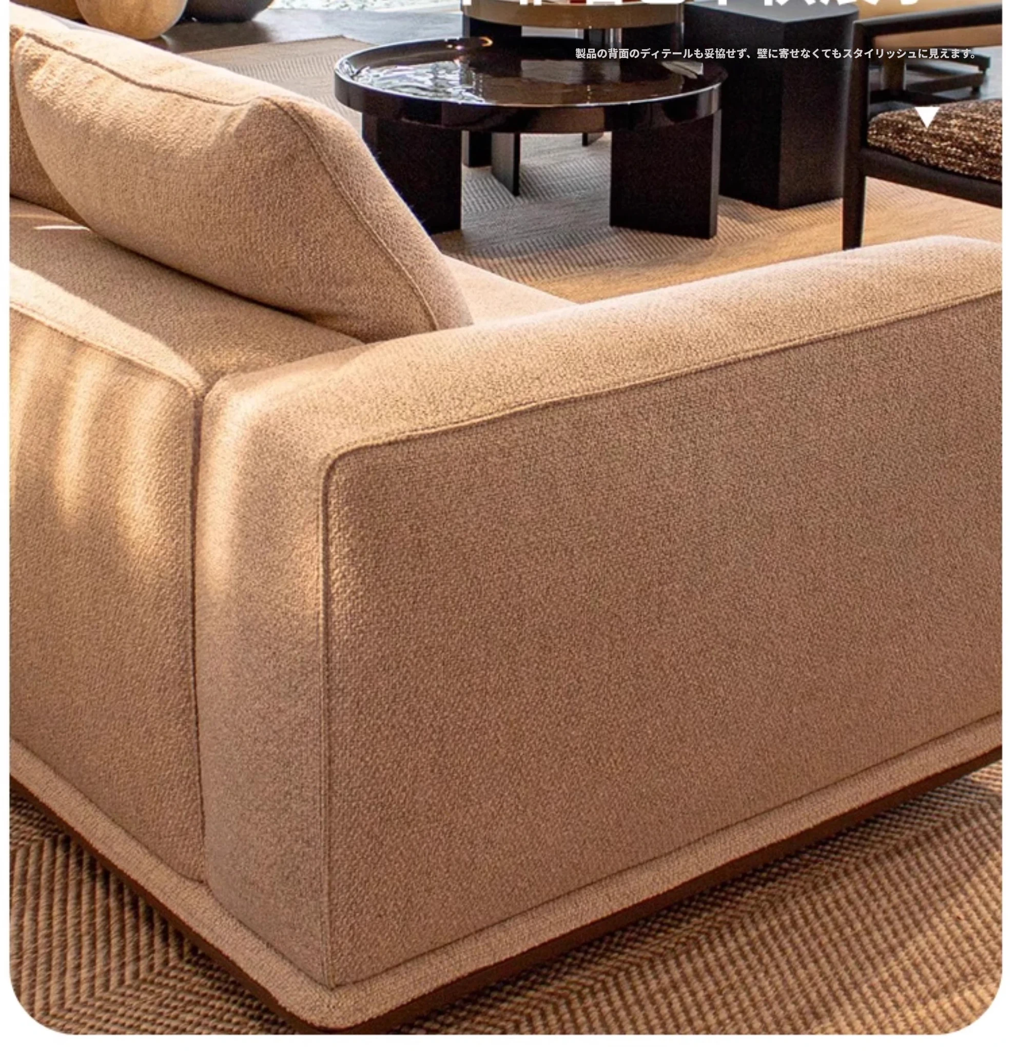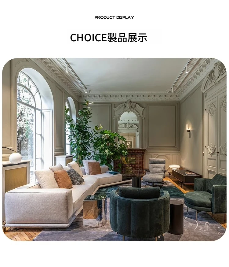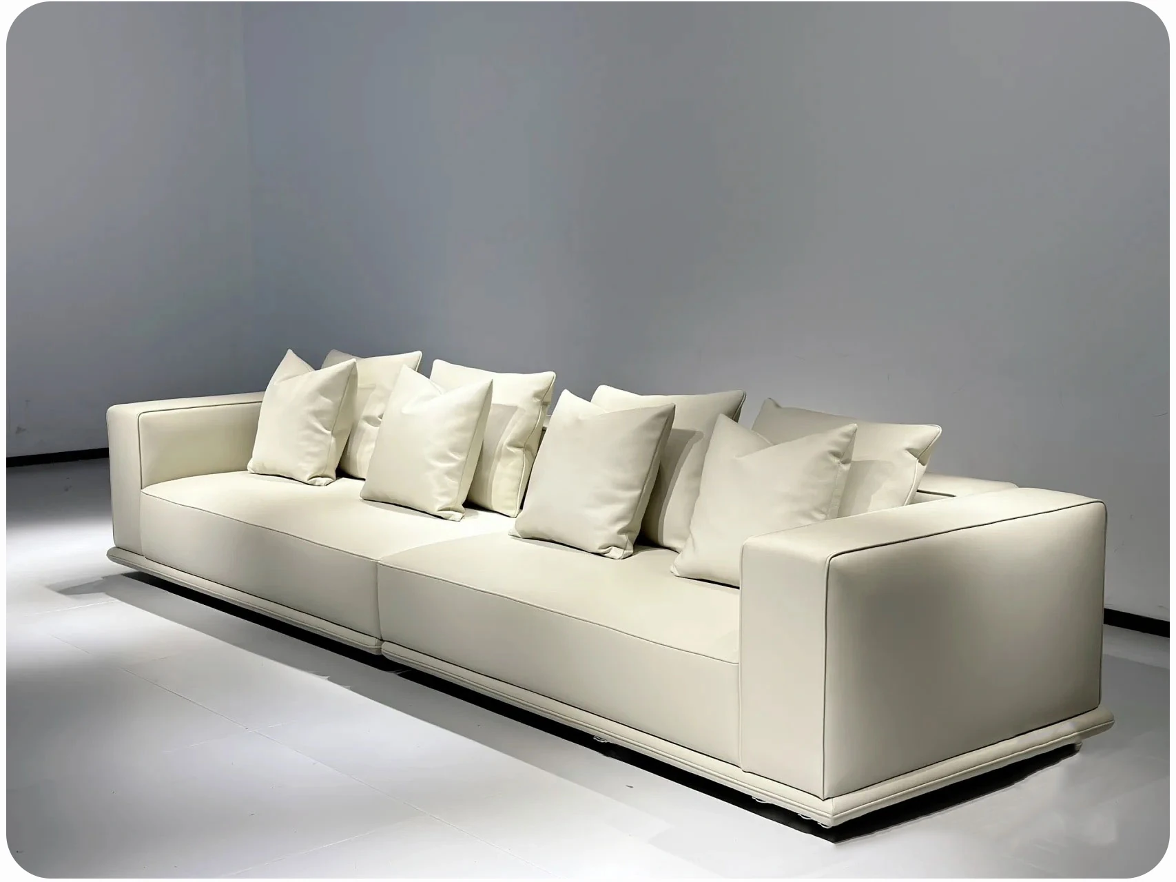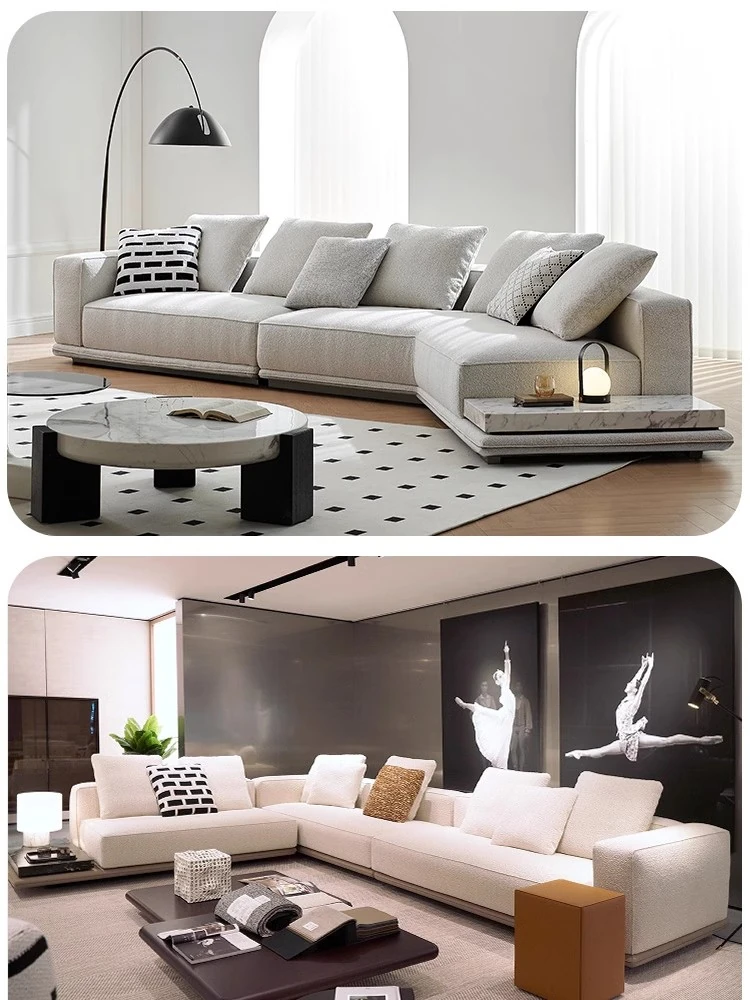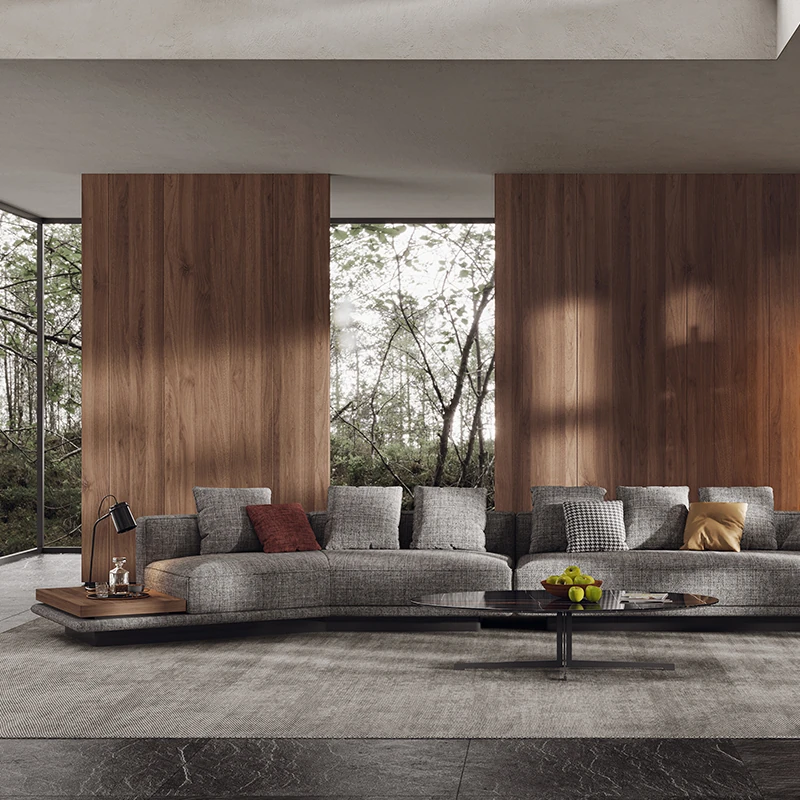 イタリアンミニマルデザインの「Horizonte」地平線ソファ - モダンで洗練された大空間向け、ラグジュアリーなヴィラに最適なリビングルーム用布製ソファ。洗練されたスタイルで、居心地の良い空間を演出します。