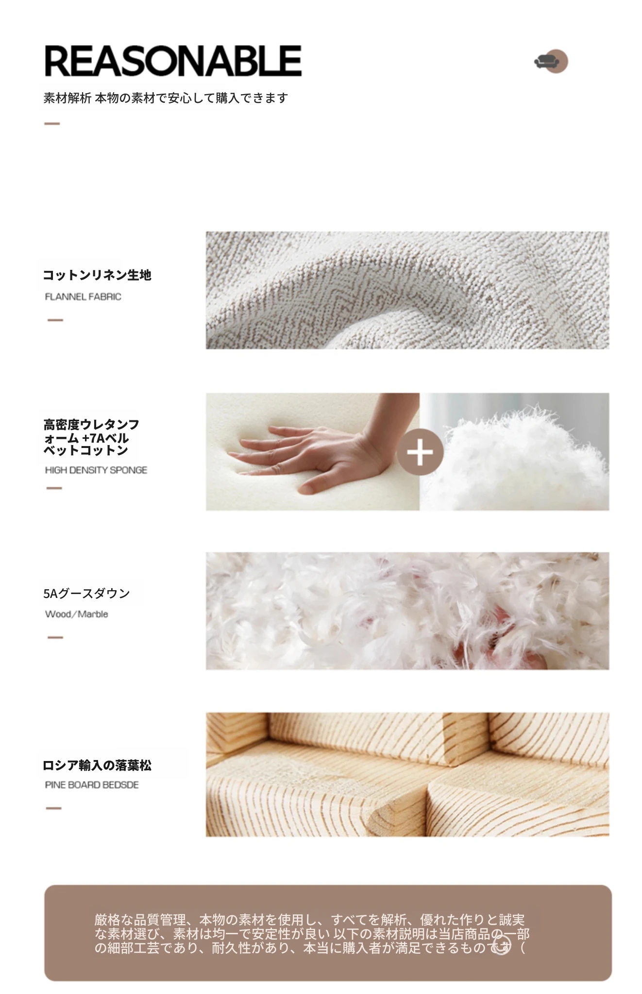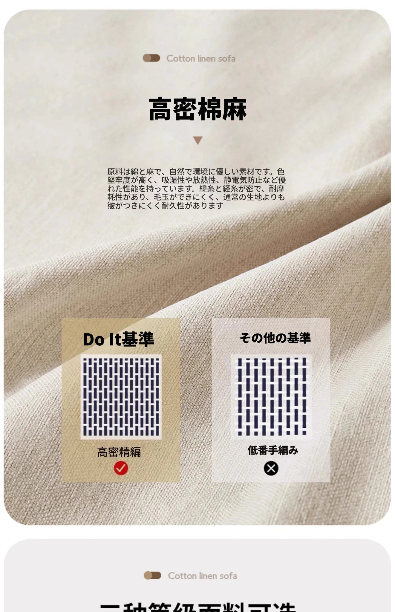 輸入原版高級コットンリネン+高反発スポンジ座包