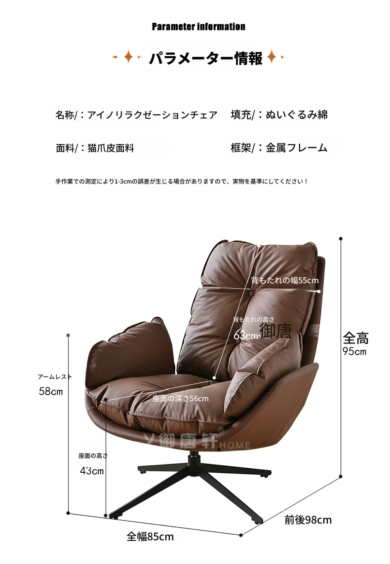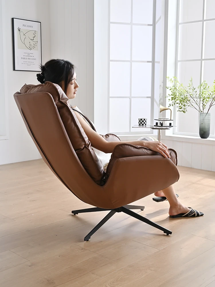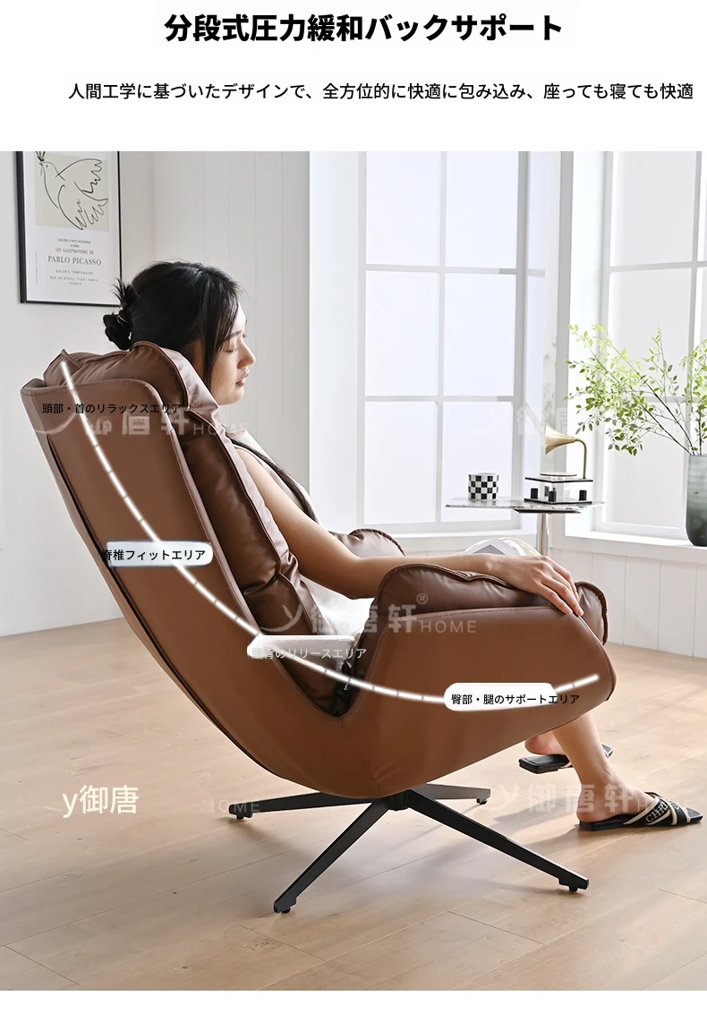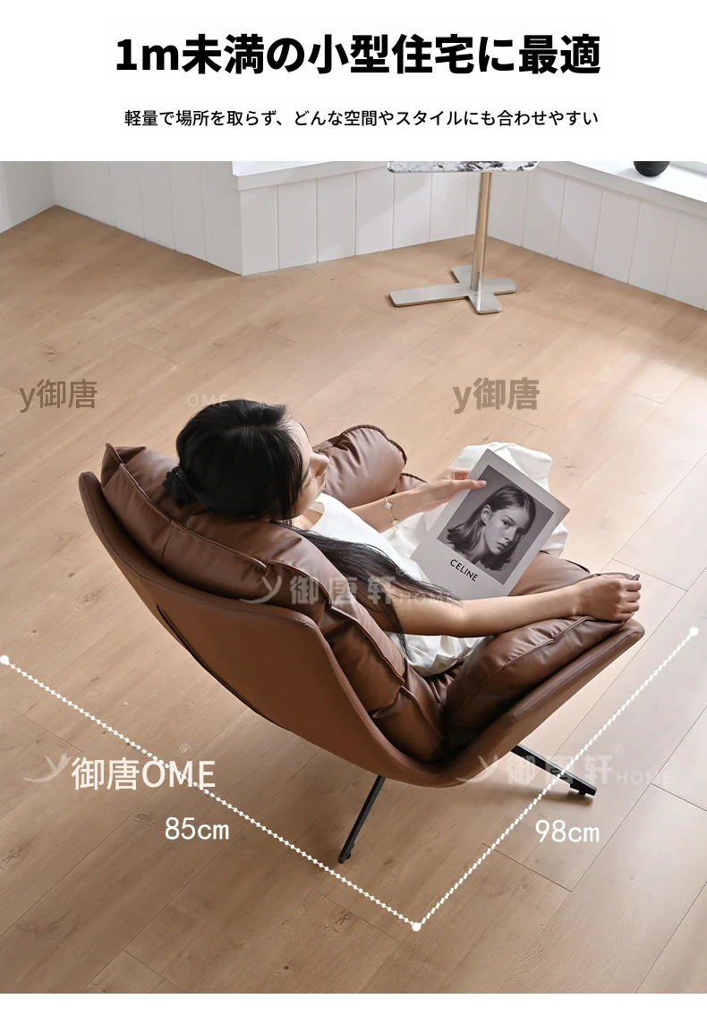 イタリアンミニマリストモダン一人用リクライニングソファチェア - 自宅のリビングやバルコニーに最適なスタイリッシュなラウンジチェア。デザイナーによる快適な座り心地で、リラックスタイムを演出します!