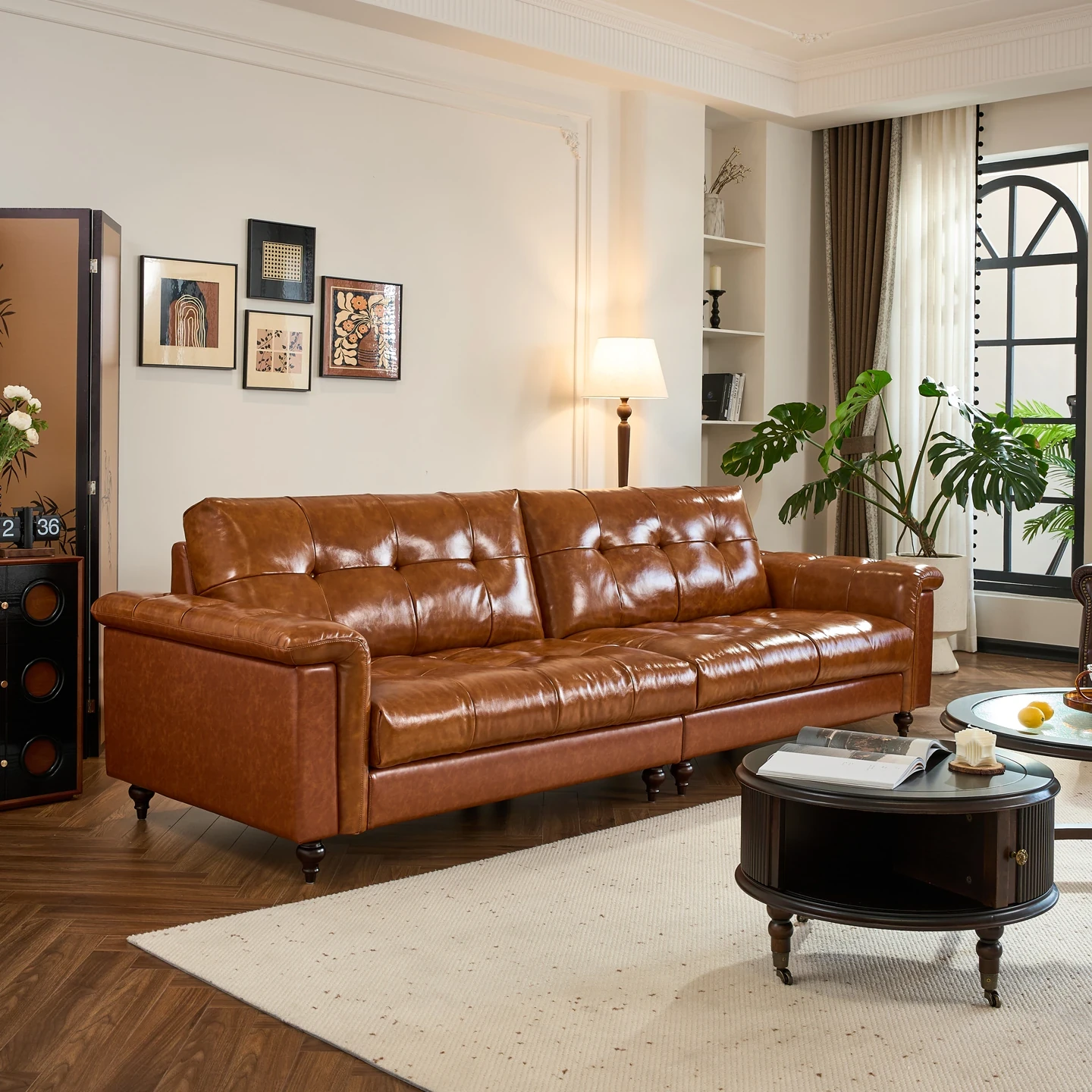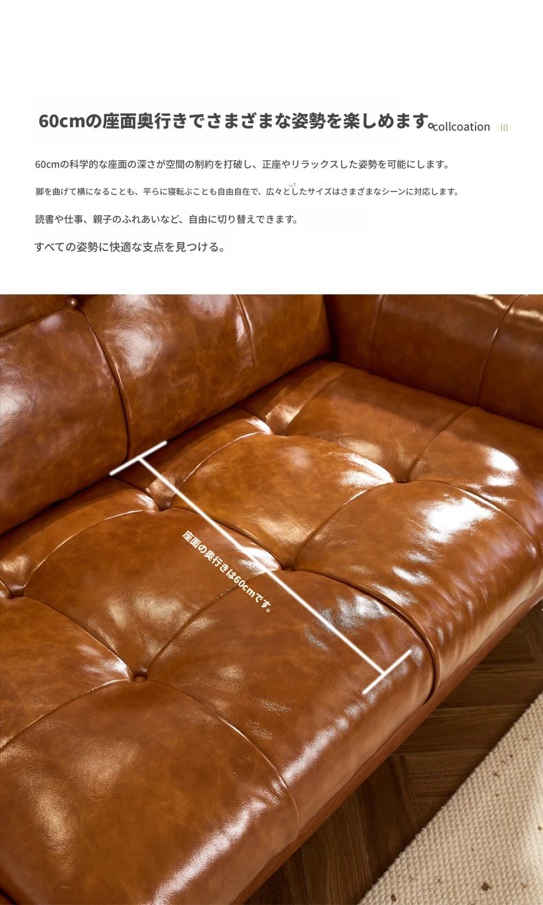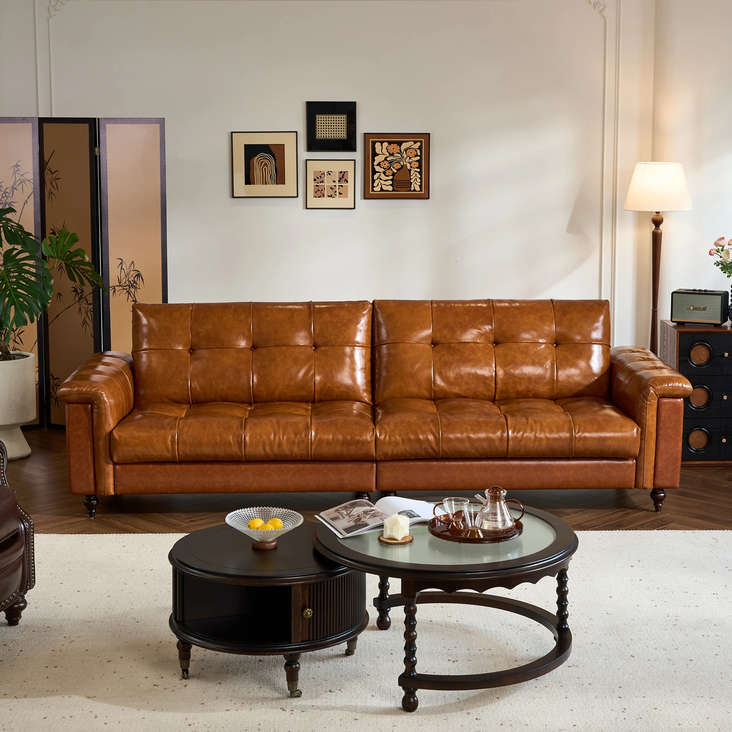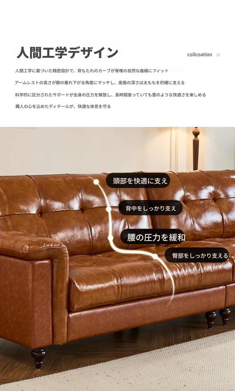 星雲本革ソファー 中古風アメリカンデザイン 高品質トップグレインオイルワックスレザー ブラウン フレンチビンテージ ダウンクッション付き リビングルームに最適なスリムデザイン