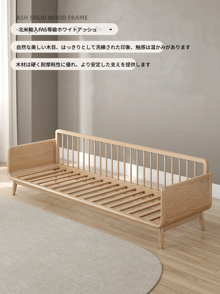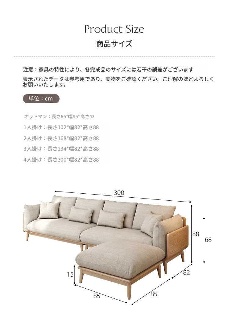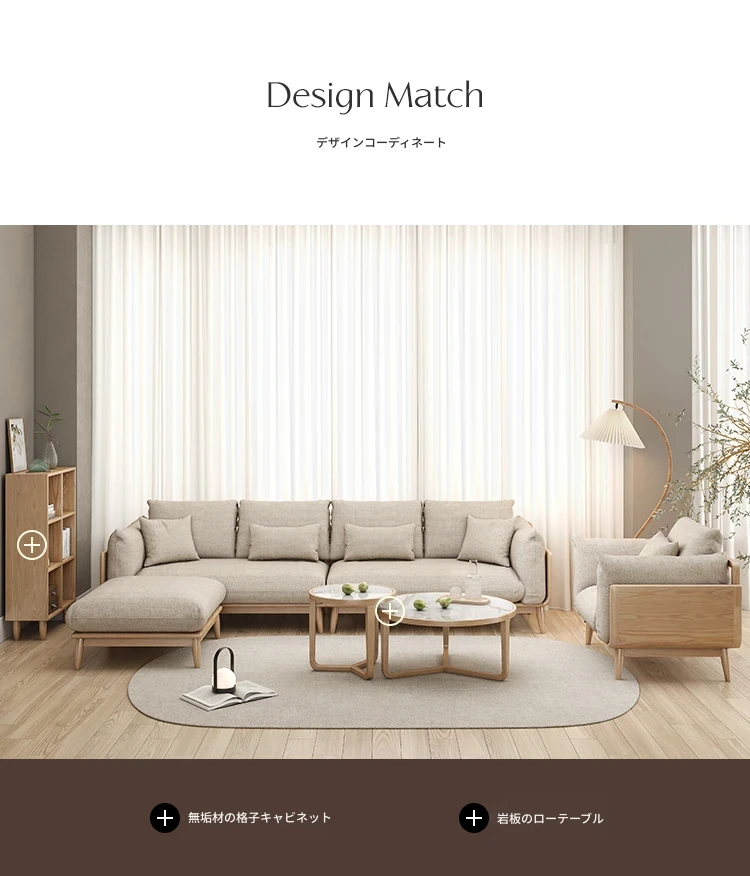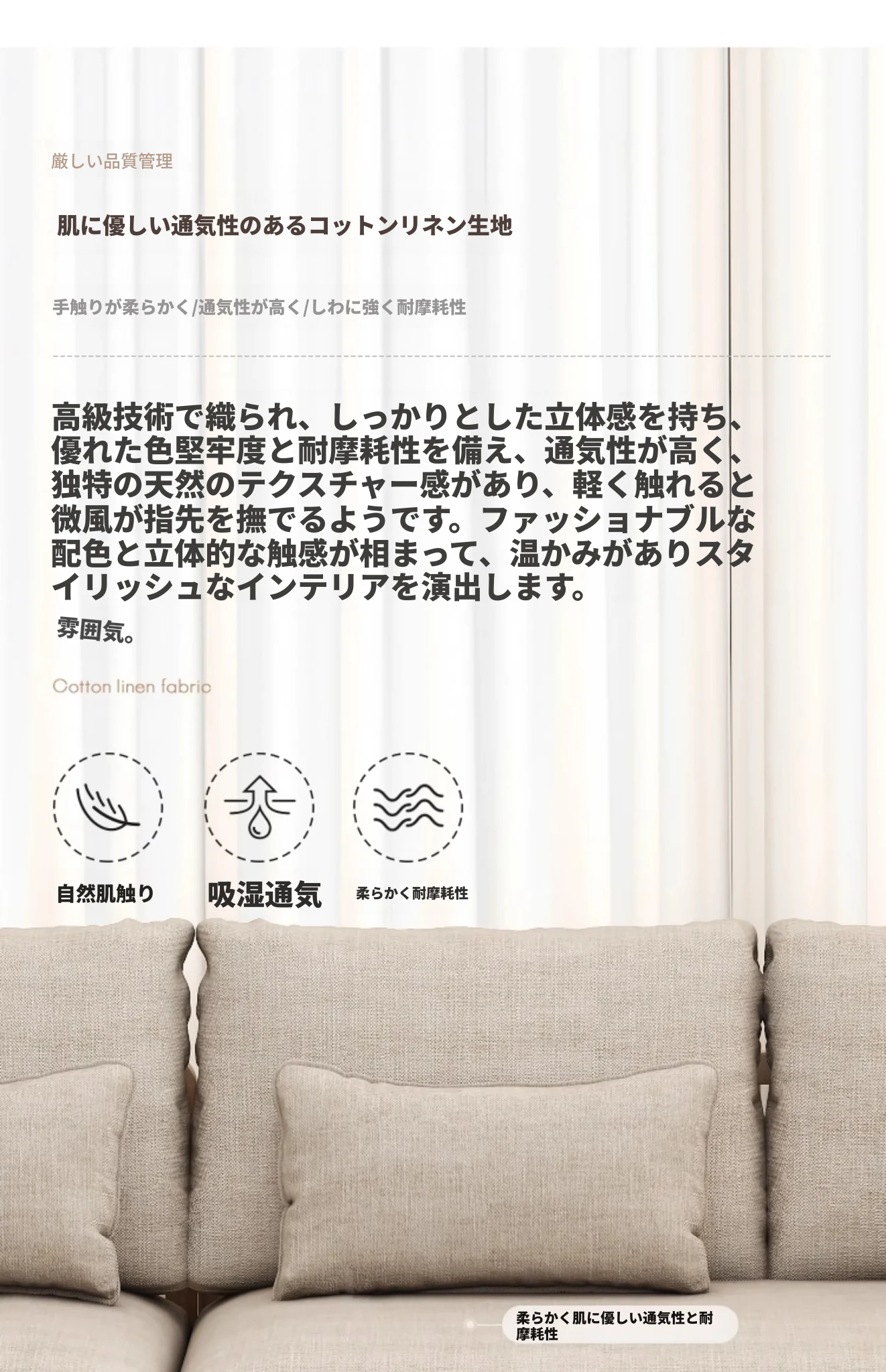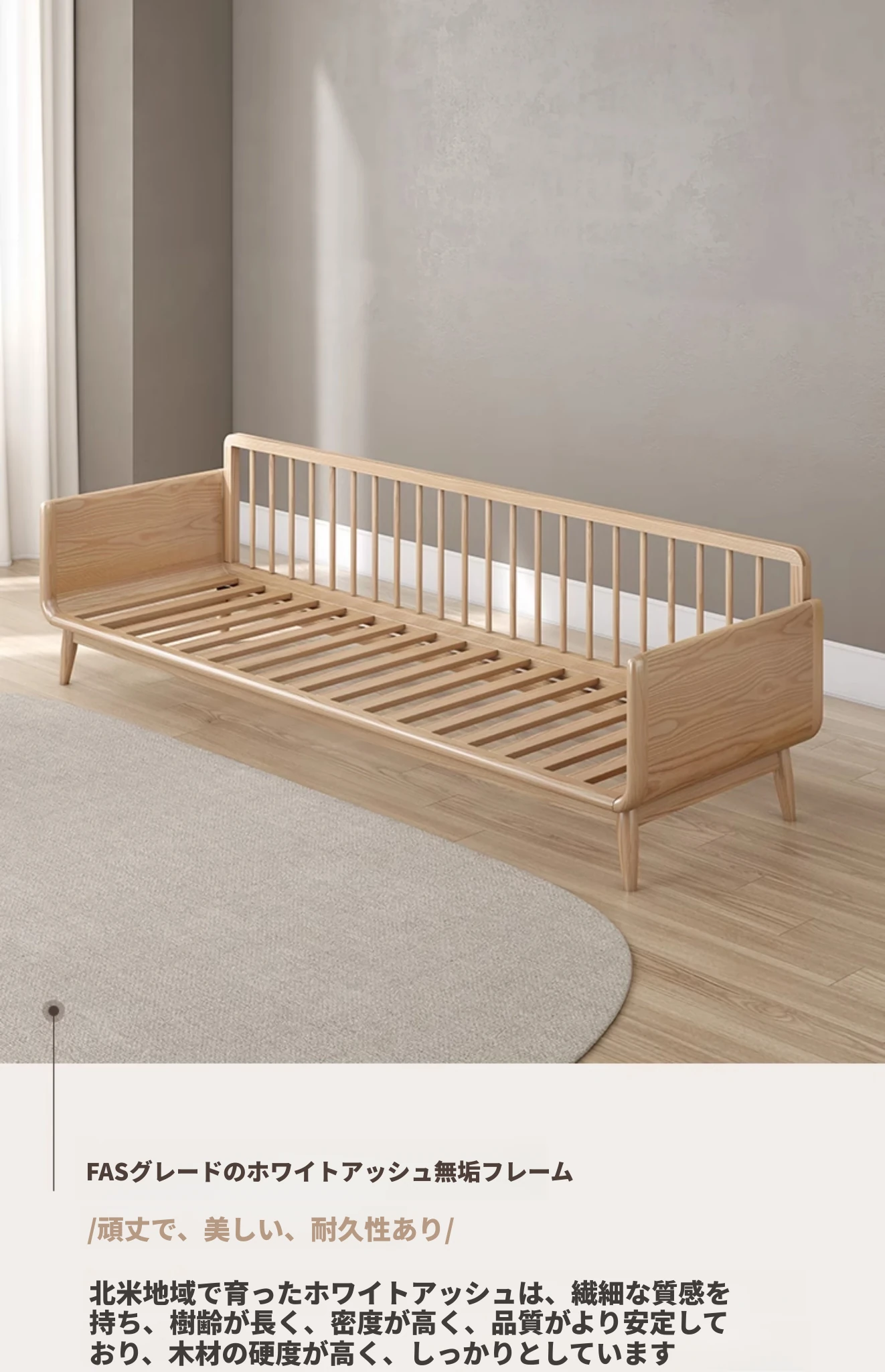 北欧スタイルの天然木製ファブリックソファ | モダンミニマリズム | テクノロジー布使用 | 小型リビングに最適 | ホワイトアッシュ材の3人掛けコンビネーションソファ