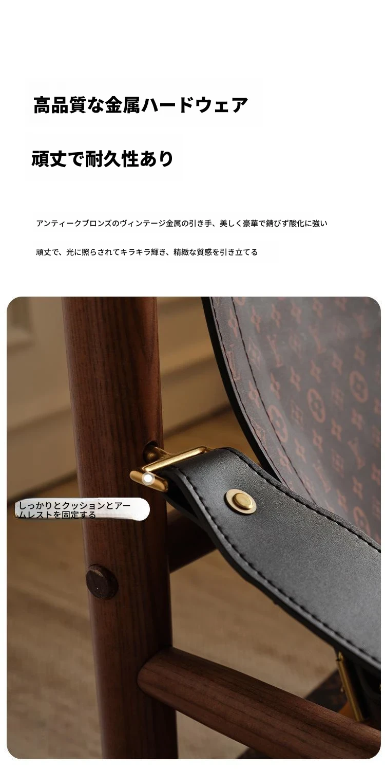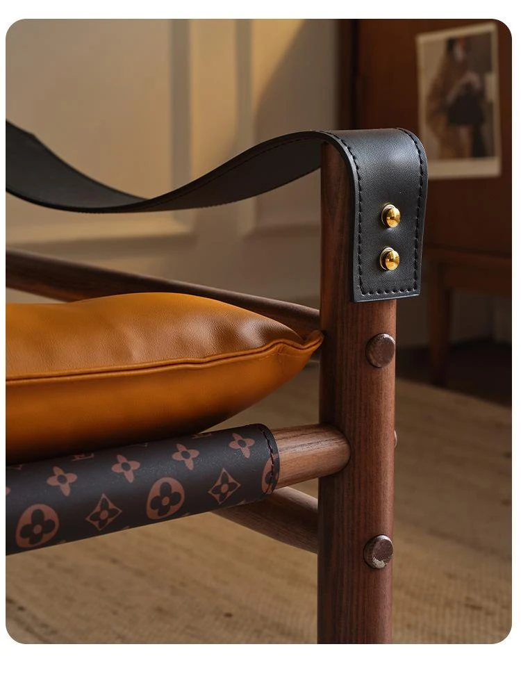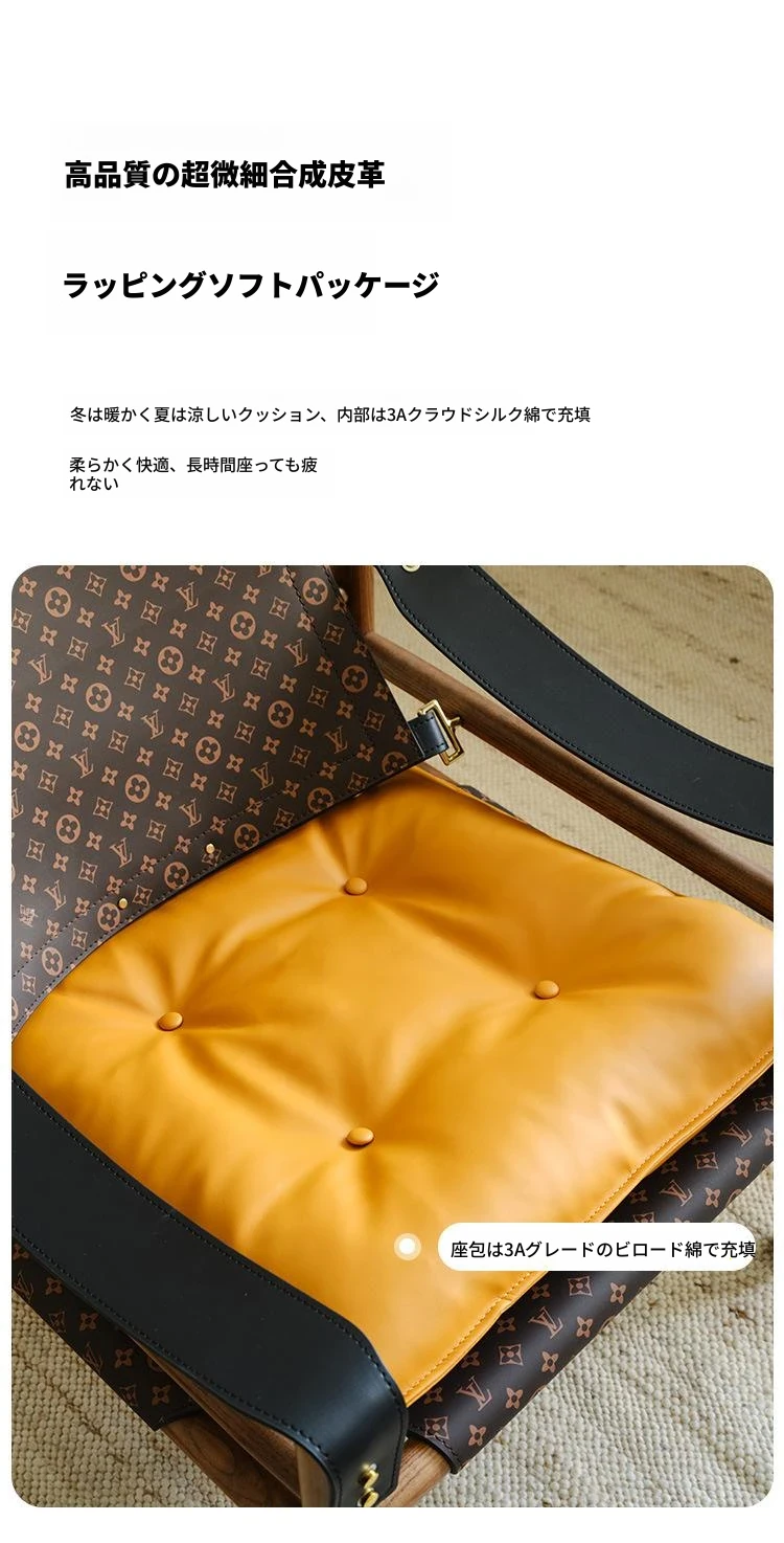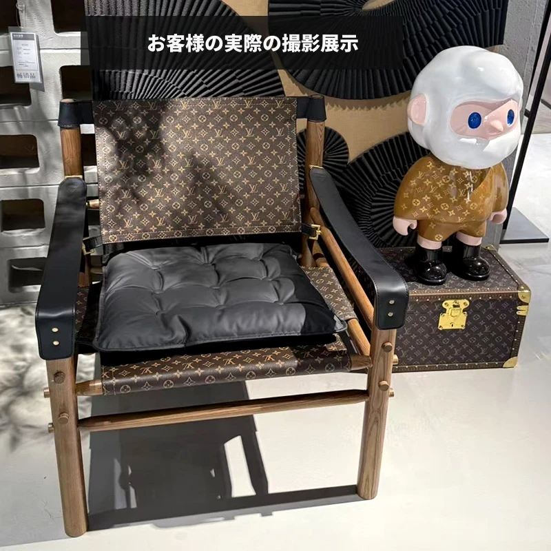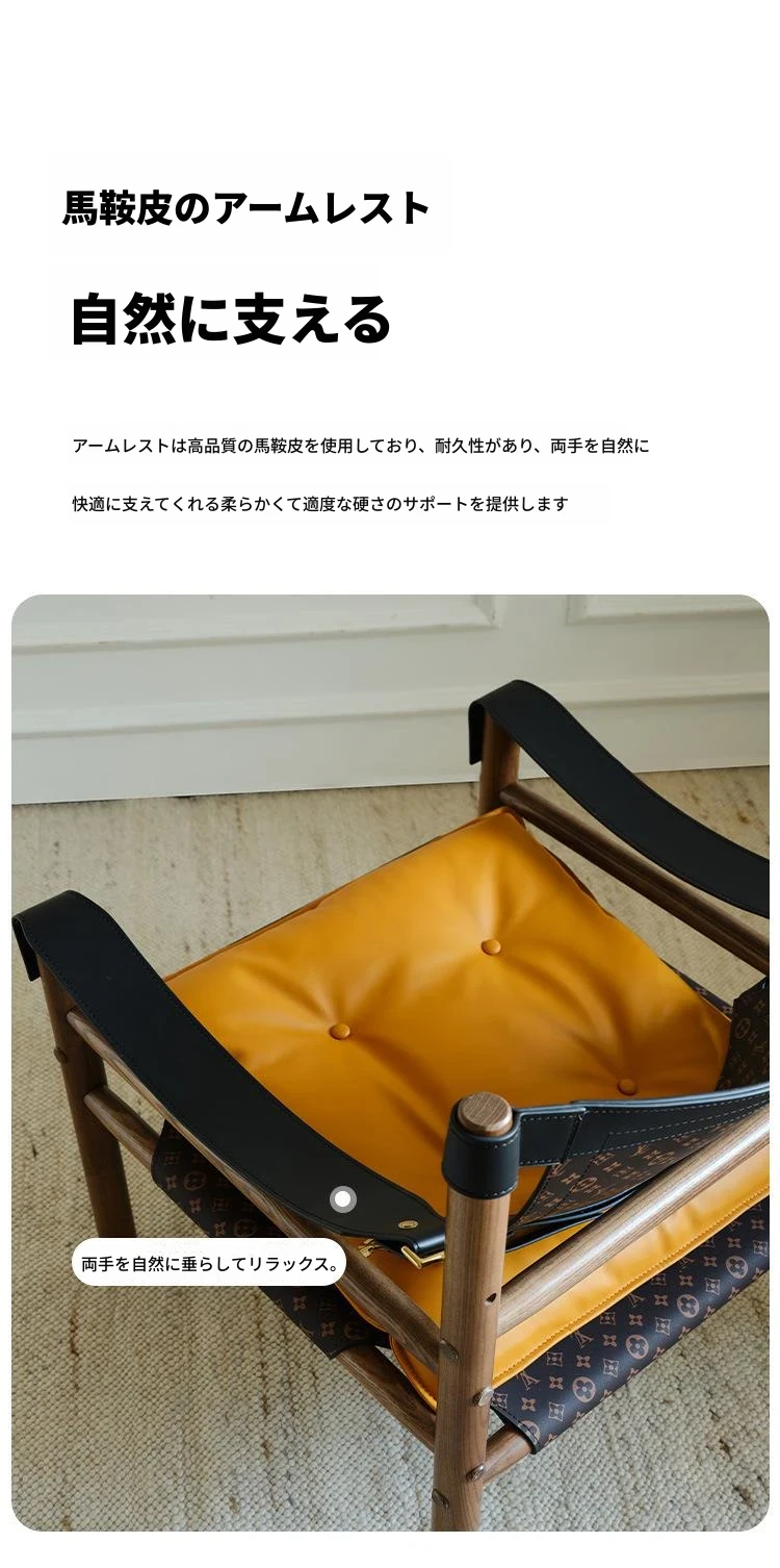 北欧スタイルの無垢材ヴィンテージソファチェア - デザイナーの創造力溢れるホテル宿泊施設向け、リラックスできるサドルレザー印刷ハンティングチェア。快適さとスタイルを兼ね備えた一品!