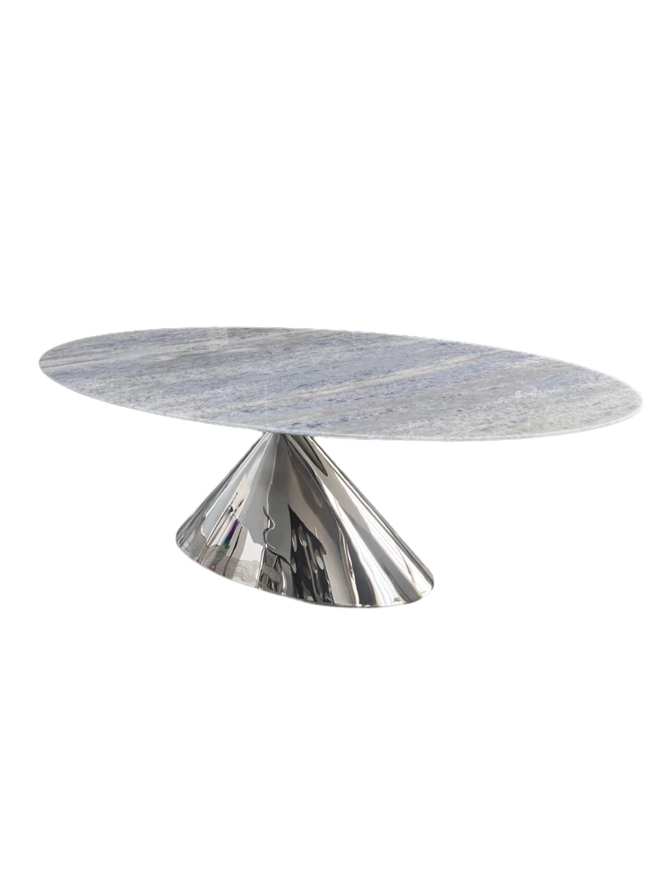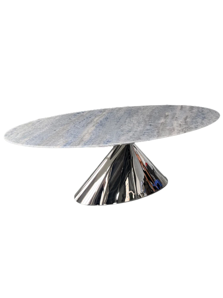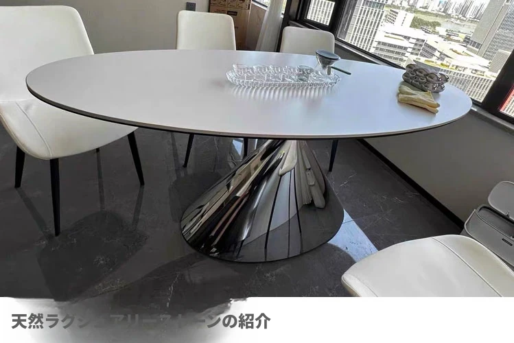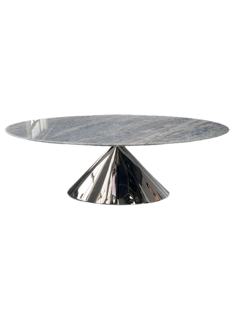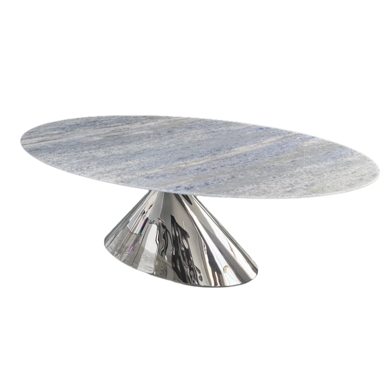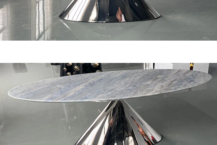 SYCY/ブルークリスタル豪華石製ダイニングテーブル - イタリアンミニマリズムの不锈鋼製フライングディスク型テーブル、エレガントな楕円形、ハイエンド別荘に最適!