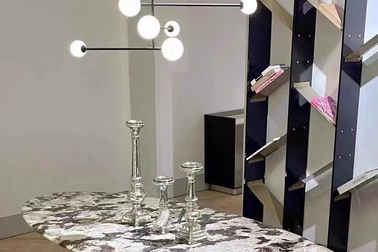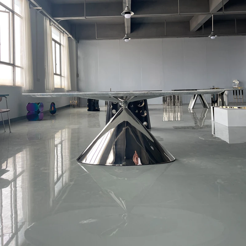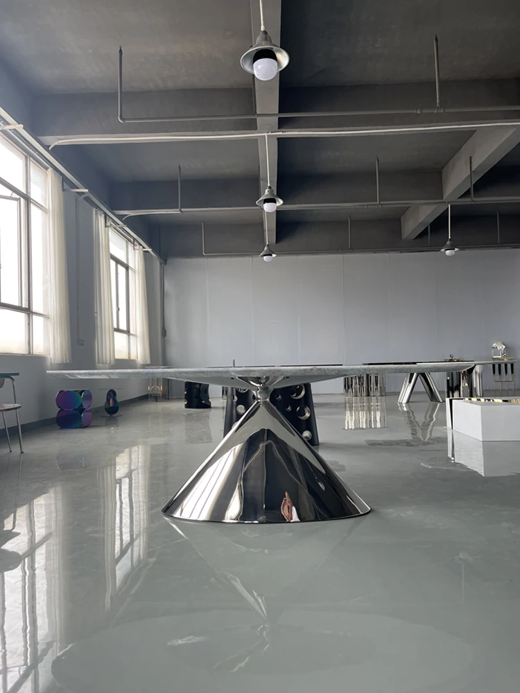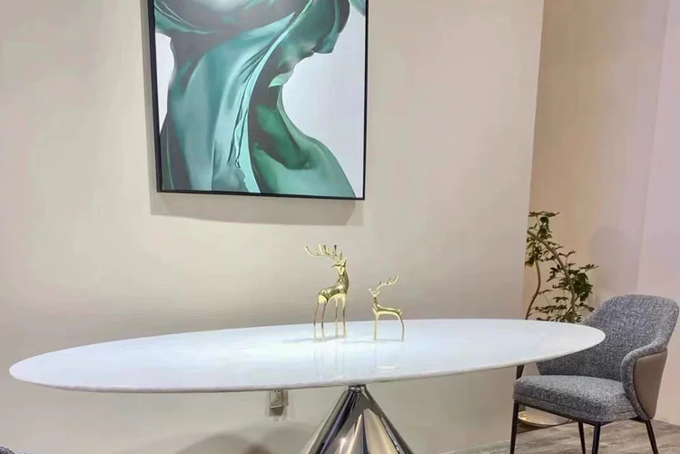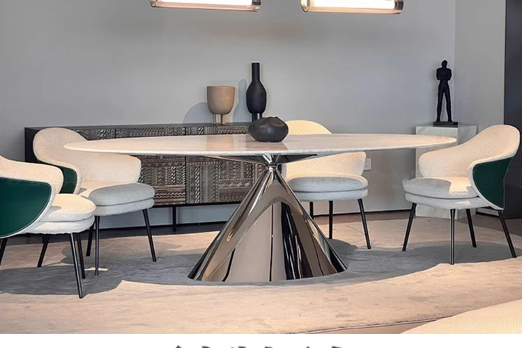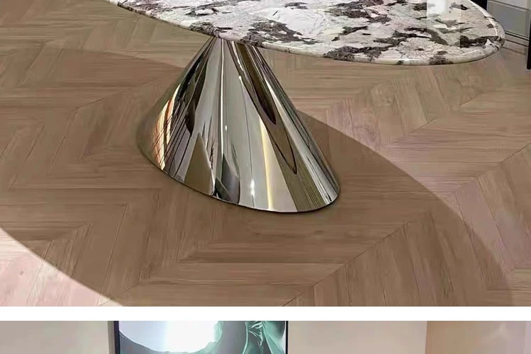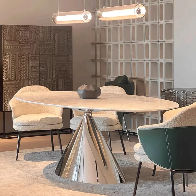 SYCY/ブルークリスタル豪華石製ダイニングテーブル - イタリアンミニマリズムの不锈鋼製フライングディスク型テーブル、エレガントな楕円形、ハイエンド別荘に最適!