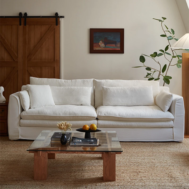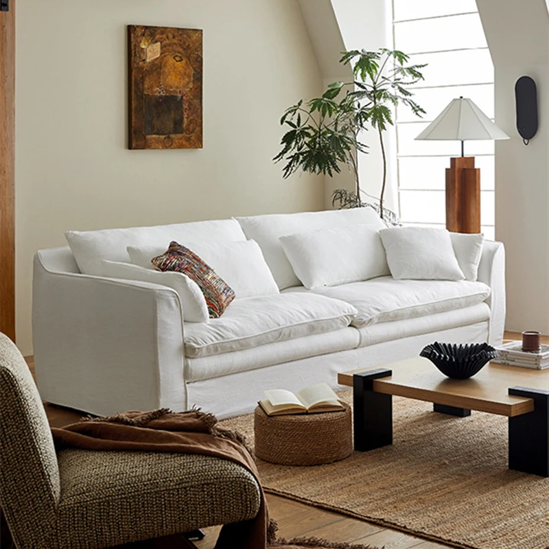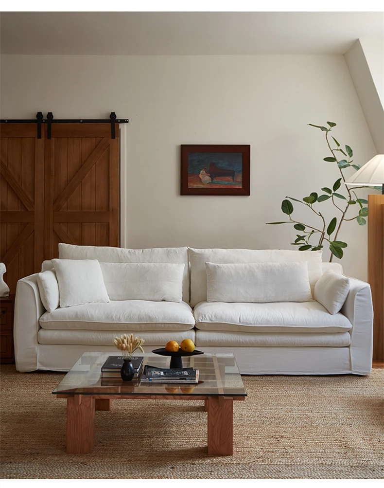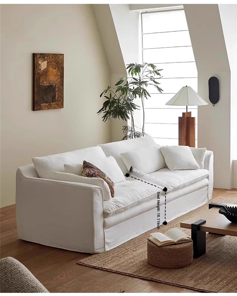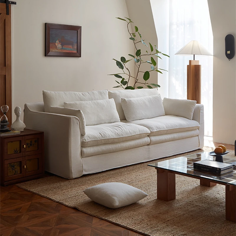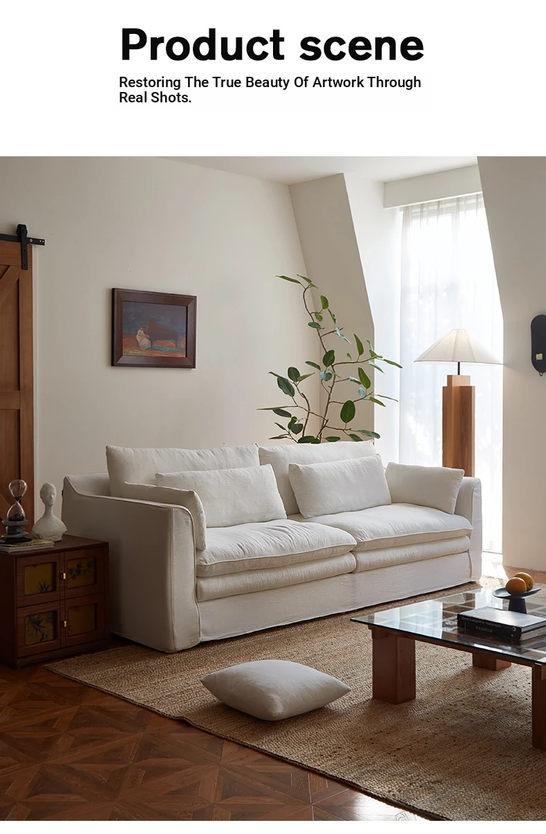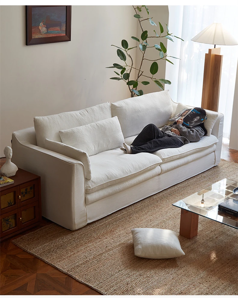 Wabi-Sabi Style Linen Sofa for Small Spaces – Removable and Washable Cream-Colored Couch Perfect for Cozy Living Rooms and Stylish Airbnb Stays – Embrace Comfort with Cotton-Linen Blend Design