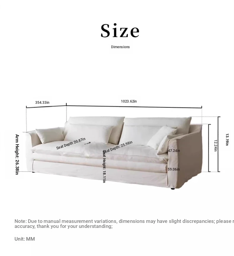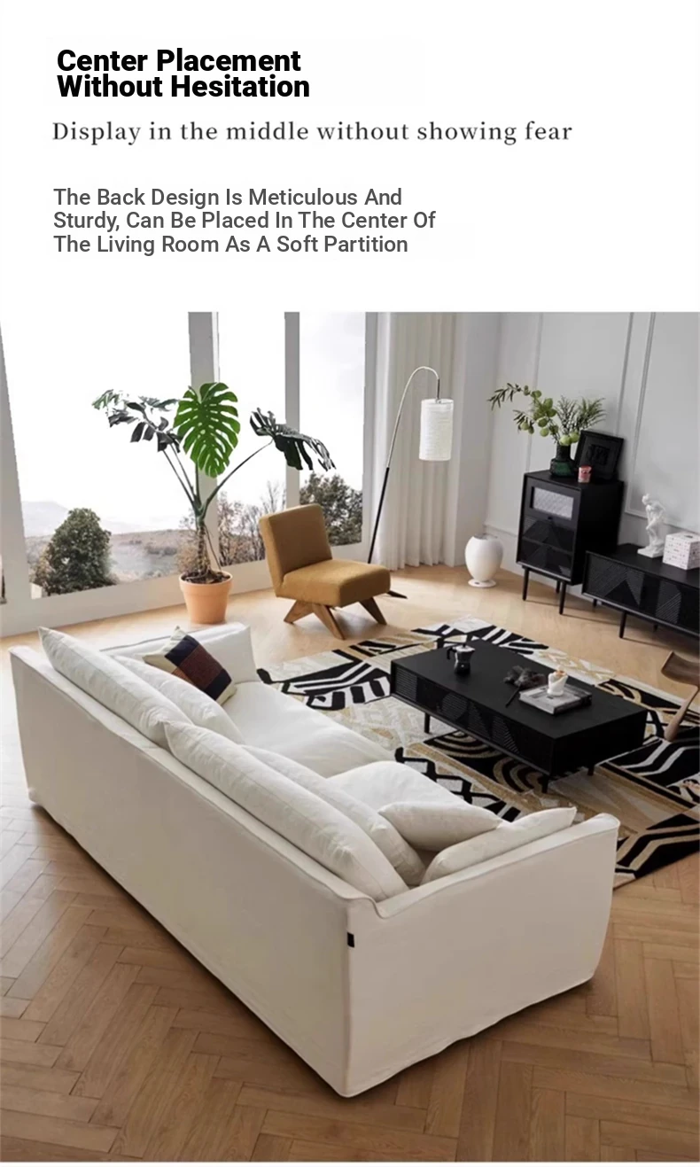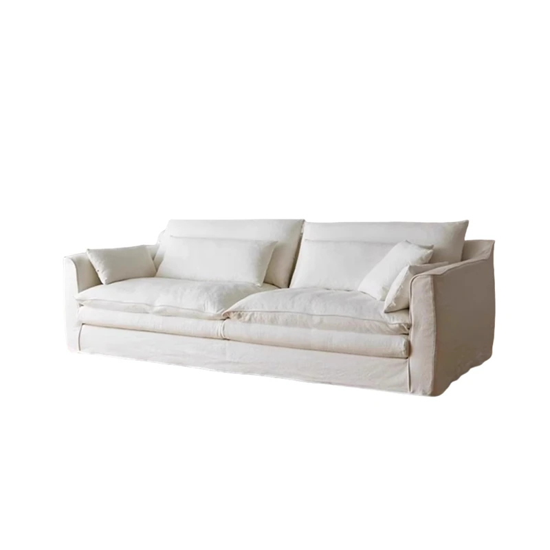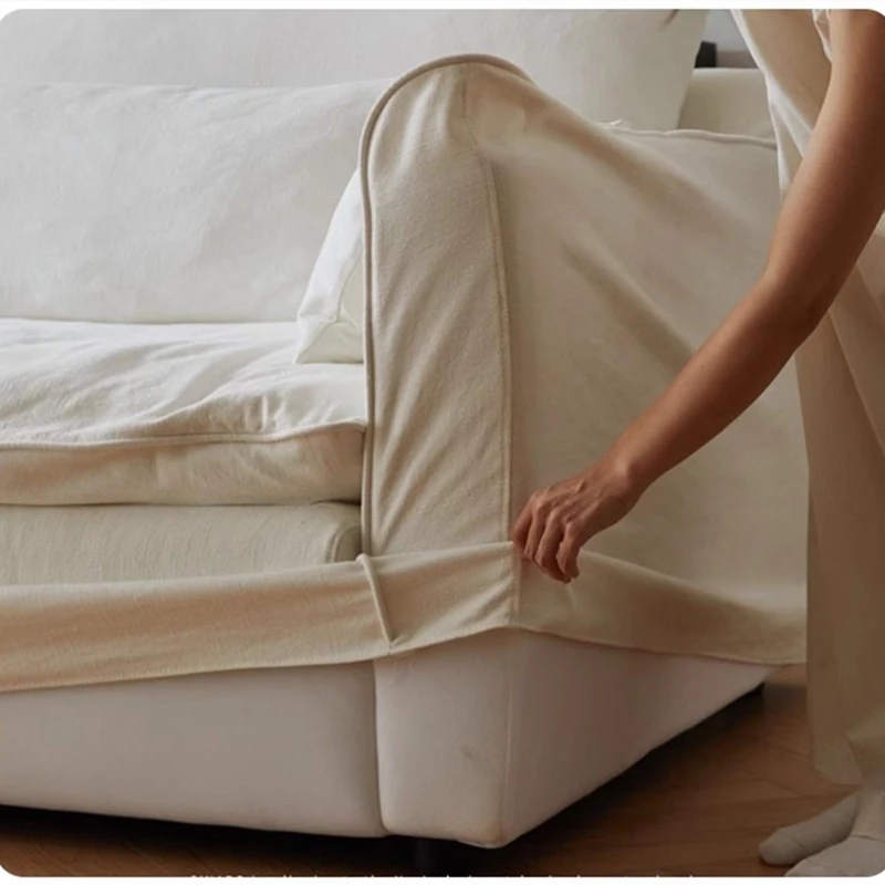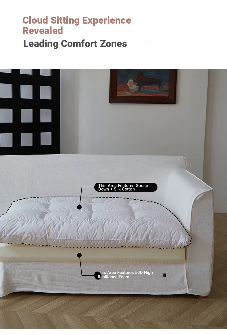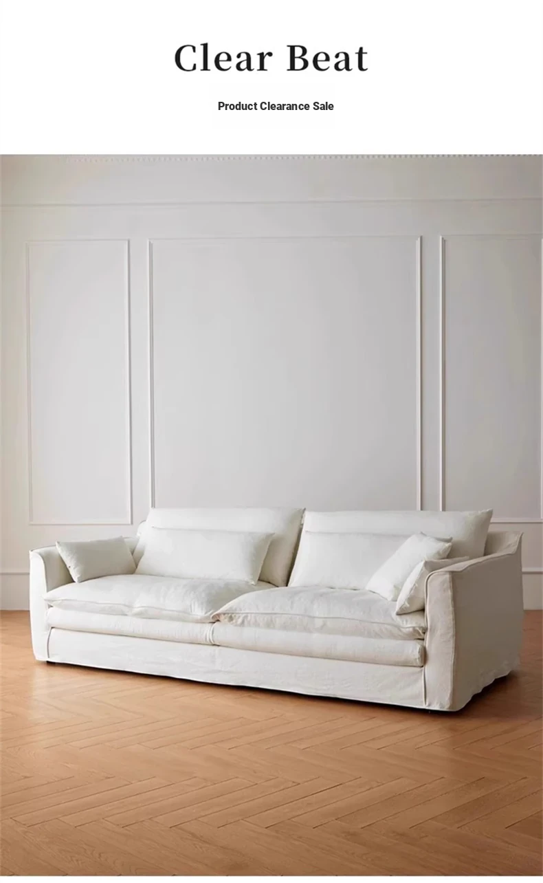 Wabi-Sabi Style Linen Sofa for Small Spaces – Removable and Washable Cream-Colored Couch Perfect for Cozy Living Rooms and Stylish Airbnb Stays – Embrace Comfort with Cotton-Linen Blend Design