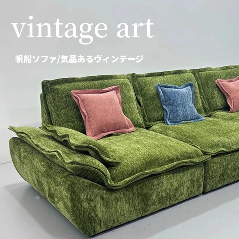 フレンチビンテージ調の帆船ソファ、リビングにぴったりな3人掛け布製ソファ!調整可能な背もたれで、快適さを追求。上質なシェニールベルベット使用、エレガントなグリーンが魅力的です。あなたのインテリアを格上げ!