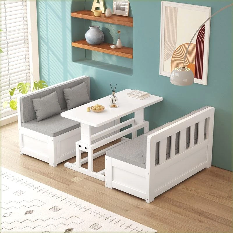 折りたたみ式のウッドソファベッド、デスク付き!モダンでシンプルなデザイン、小スペース向けの多機能収納ベッド。リビングルームをスタイリッシュに演出する理想的なアイテムです!