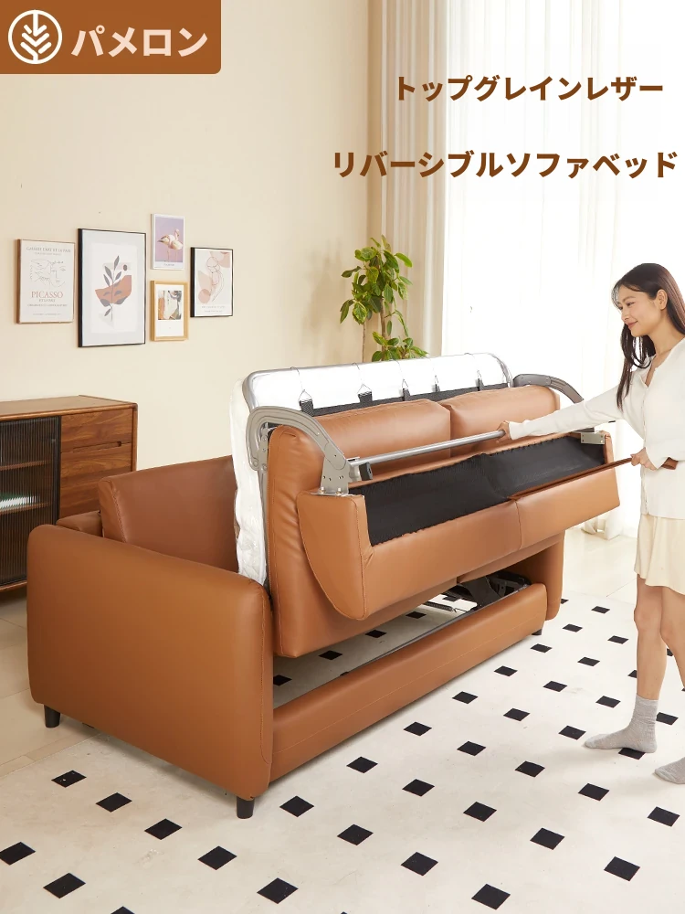 本革リバーシブルソファベッド - マットレス付きの2in1多機能折りたたみソファ!小さなリビングに最適なスペース節約型、快適な寝心地を実現。あなたのライフスタイルにぴったりの一品です!